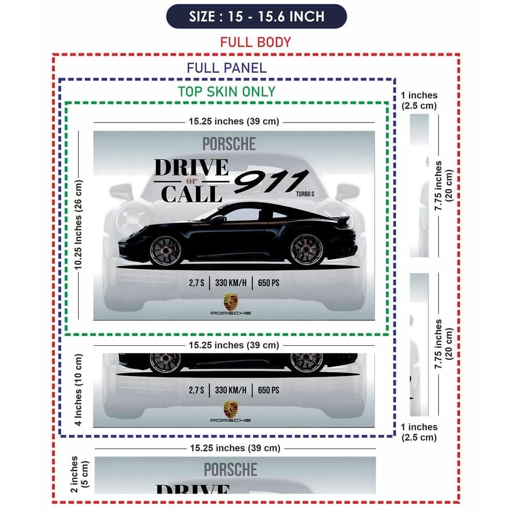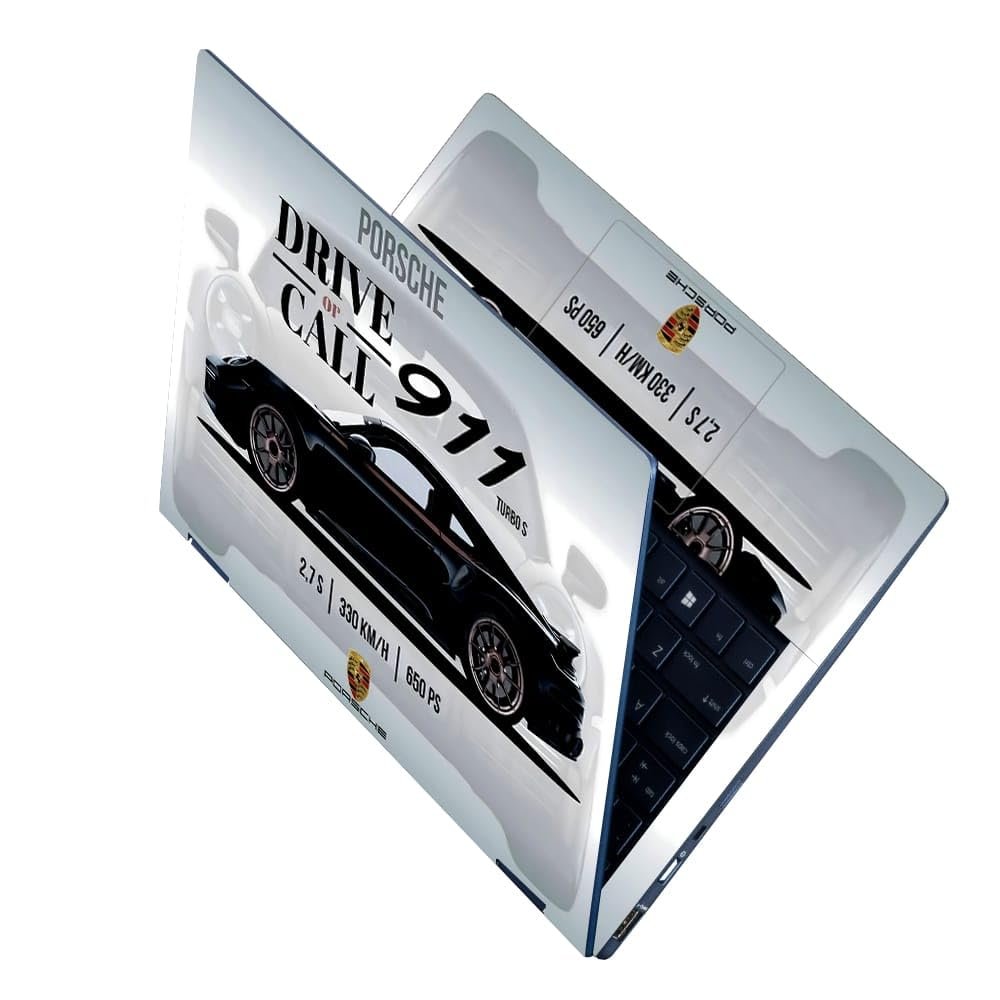 Full Body Laptop Skin Upto 15.6 inch Sticker Compatible for Dell/HP/Lenovo/Acer/Asus All Laptop Size Upto 14 to 15.6 Inch – Porsche 911 Black Specs Design