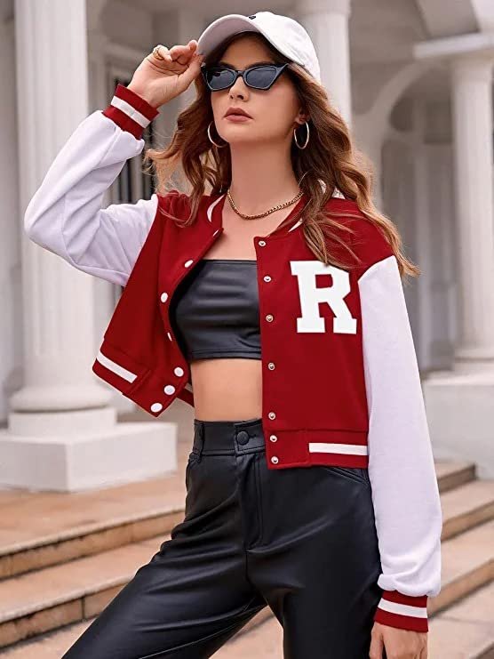 Full Sleev Bomber Jacket for Woman (Red & White)
