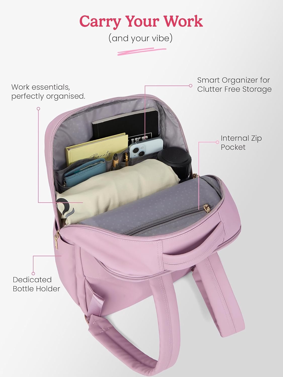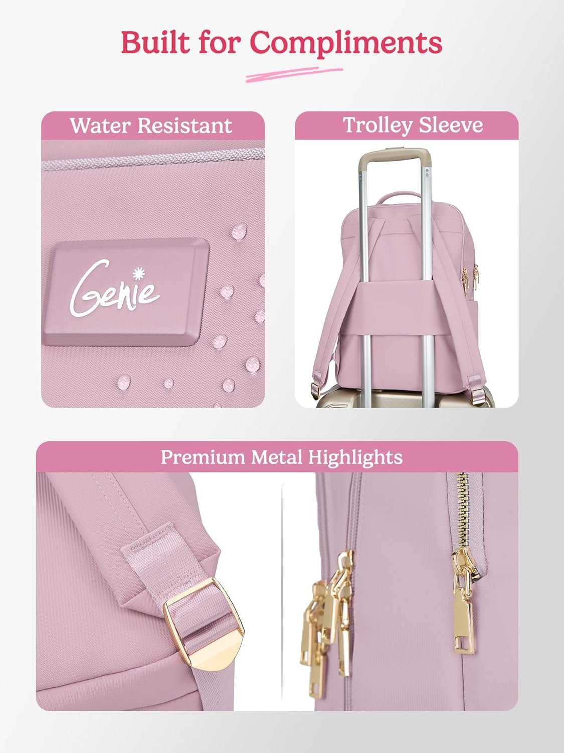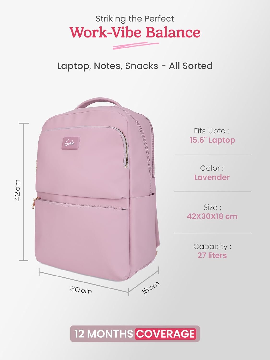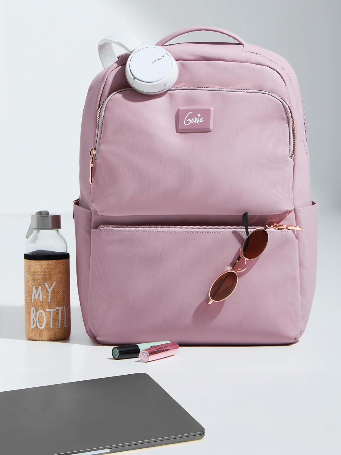 Genie Casual Backpack for Girls |17 In-22 Ltr with Laptop Sleeve, Two Compartments and Trolley Sleeve with Padded Shoulders |Best for Books,Stationery,Lunch Box & Essentials