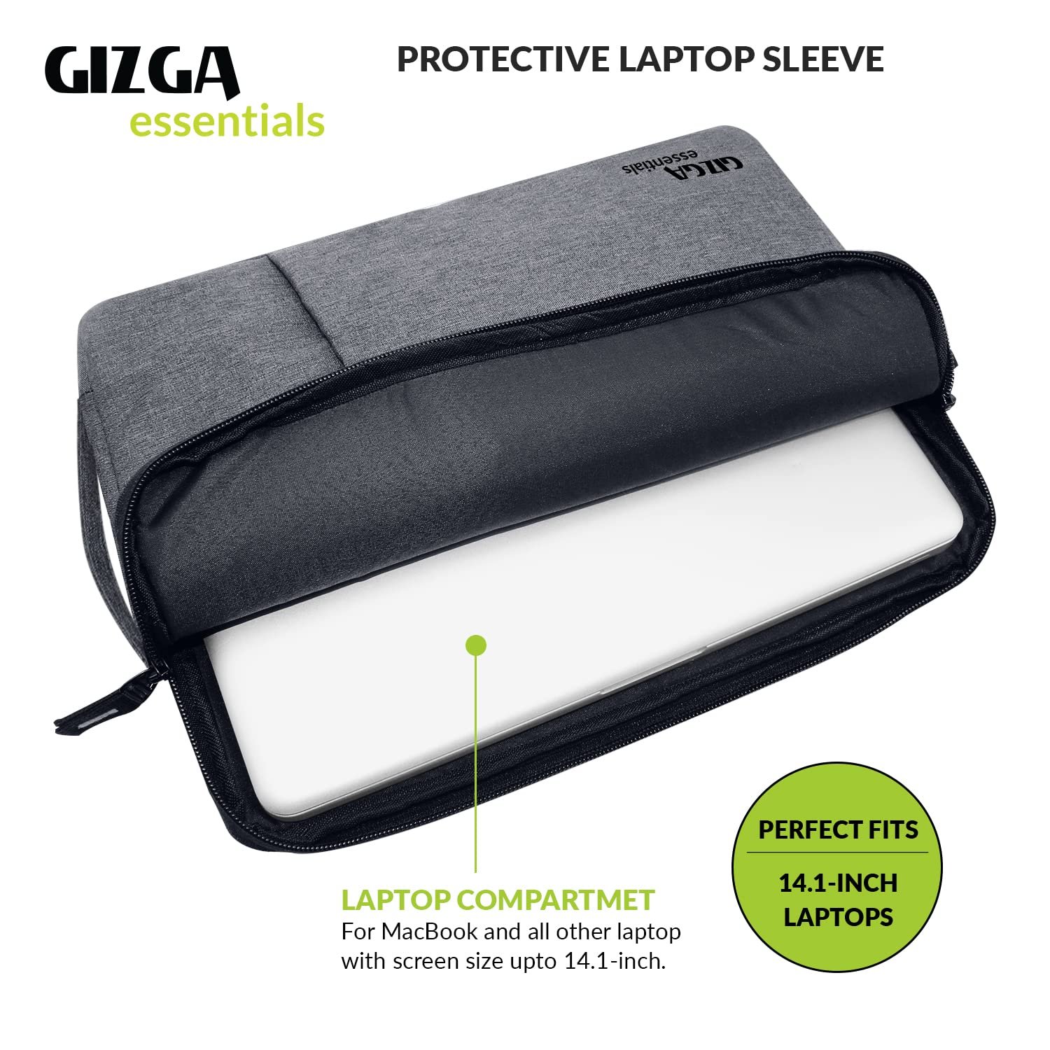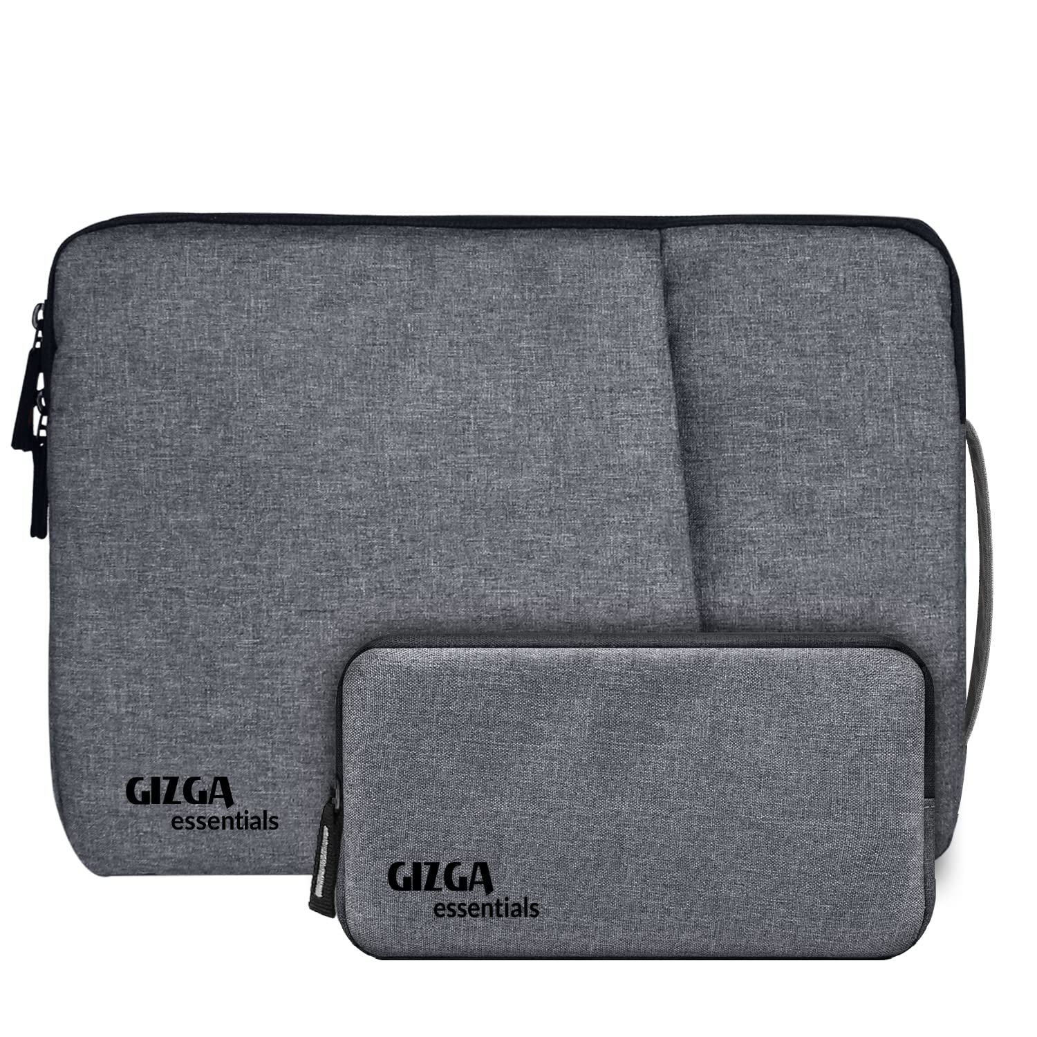 Gizga Essentials 14.1 Inch Laptop Sleeve Case Cover Bag with Extra Pouch, Front Pocket & Handle| Slim & Water-Resistant Nylon Fabric with Shockproof Foam Padding, Soft Lining & Premium Zipper (Grey)