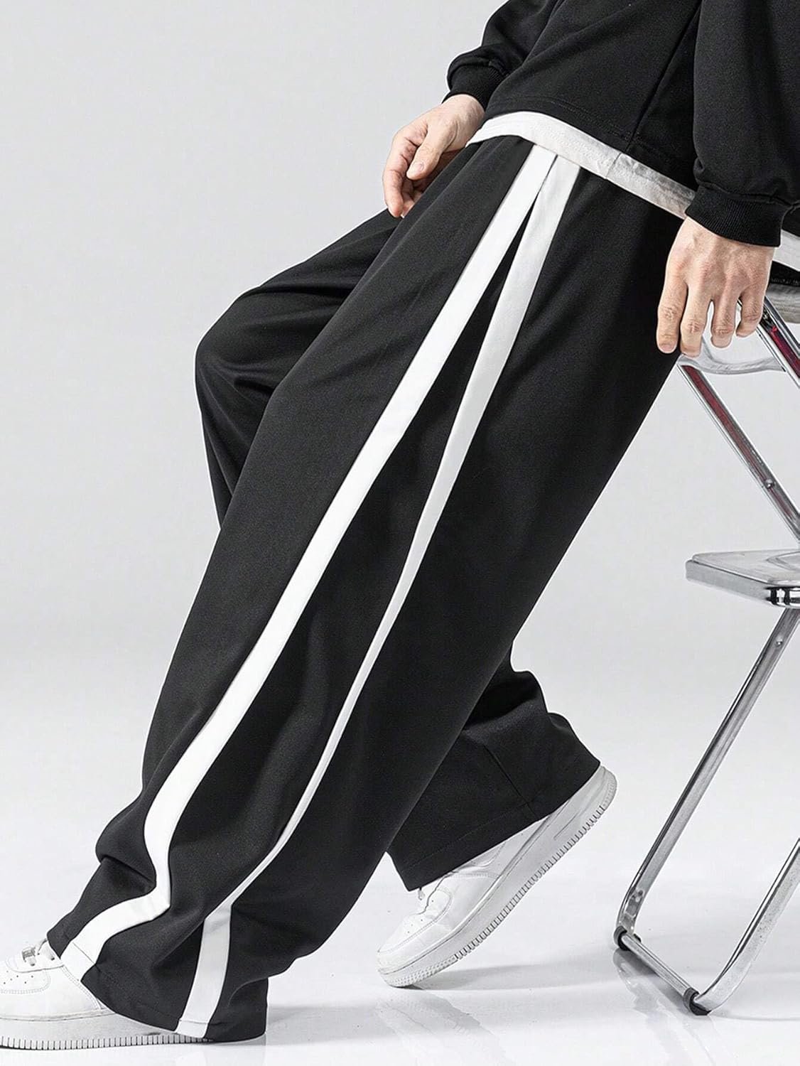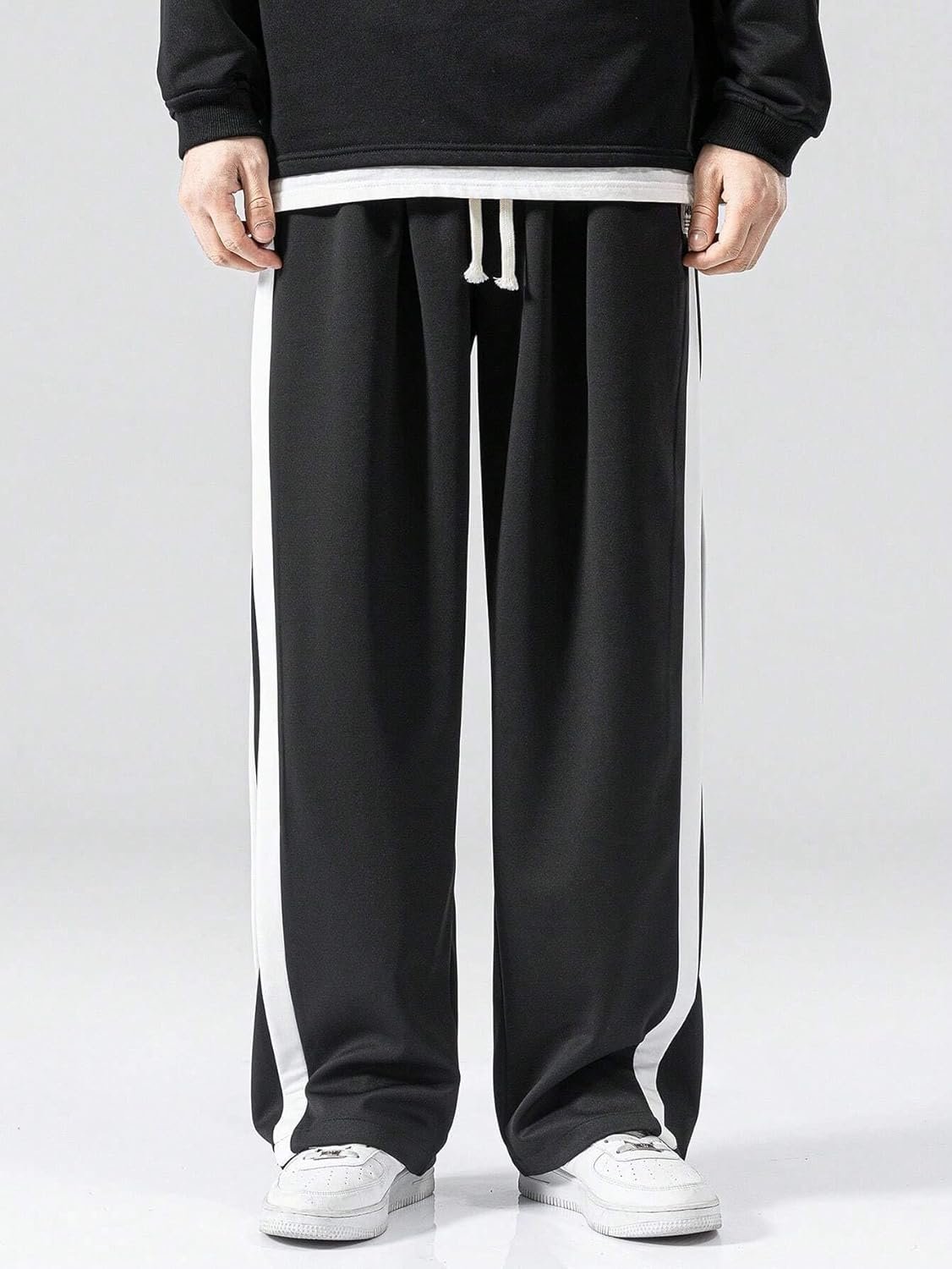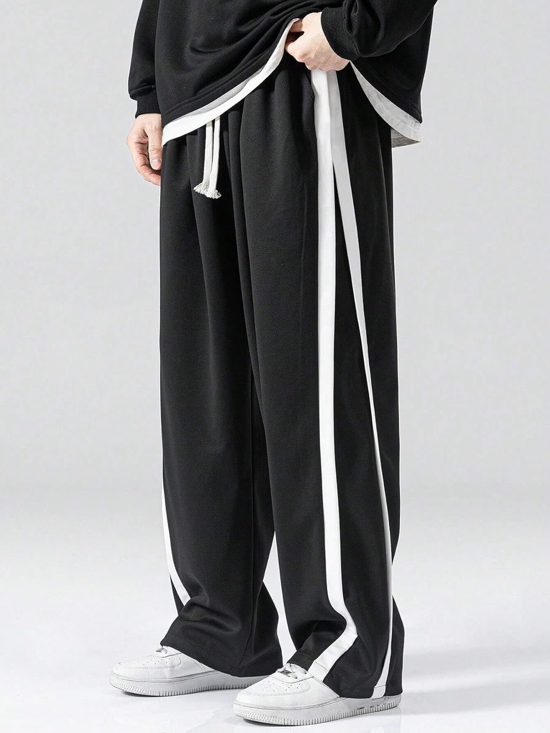 GRECIILOOKS Men’s Wide Leg Track Pants with Contrast Side Panel || Relaxed Drawstring Fit Streetwear Trousers || Poly Blend Casual Joggers