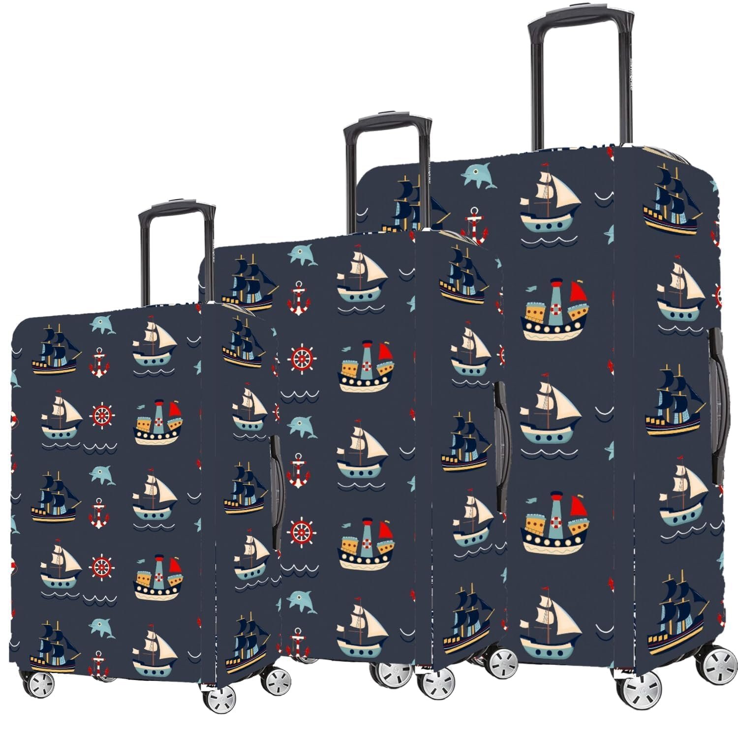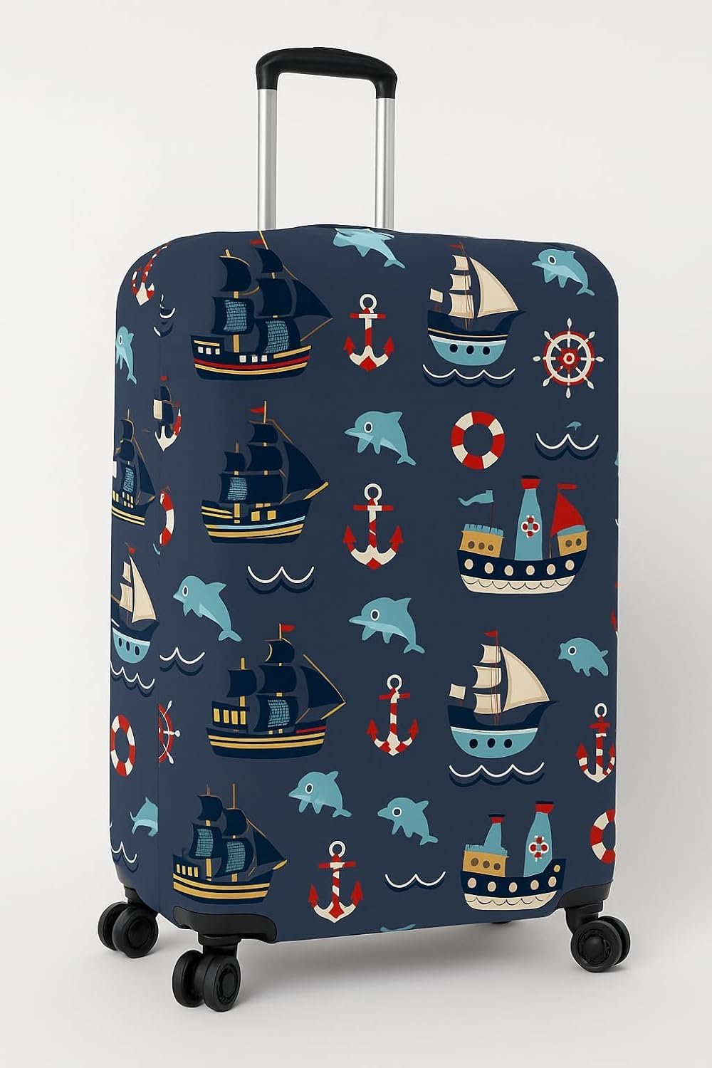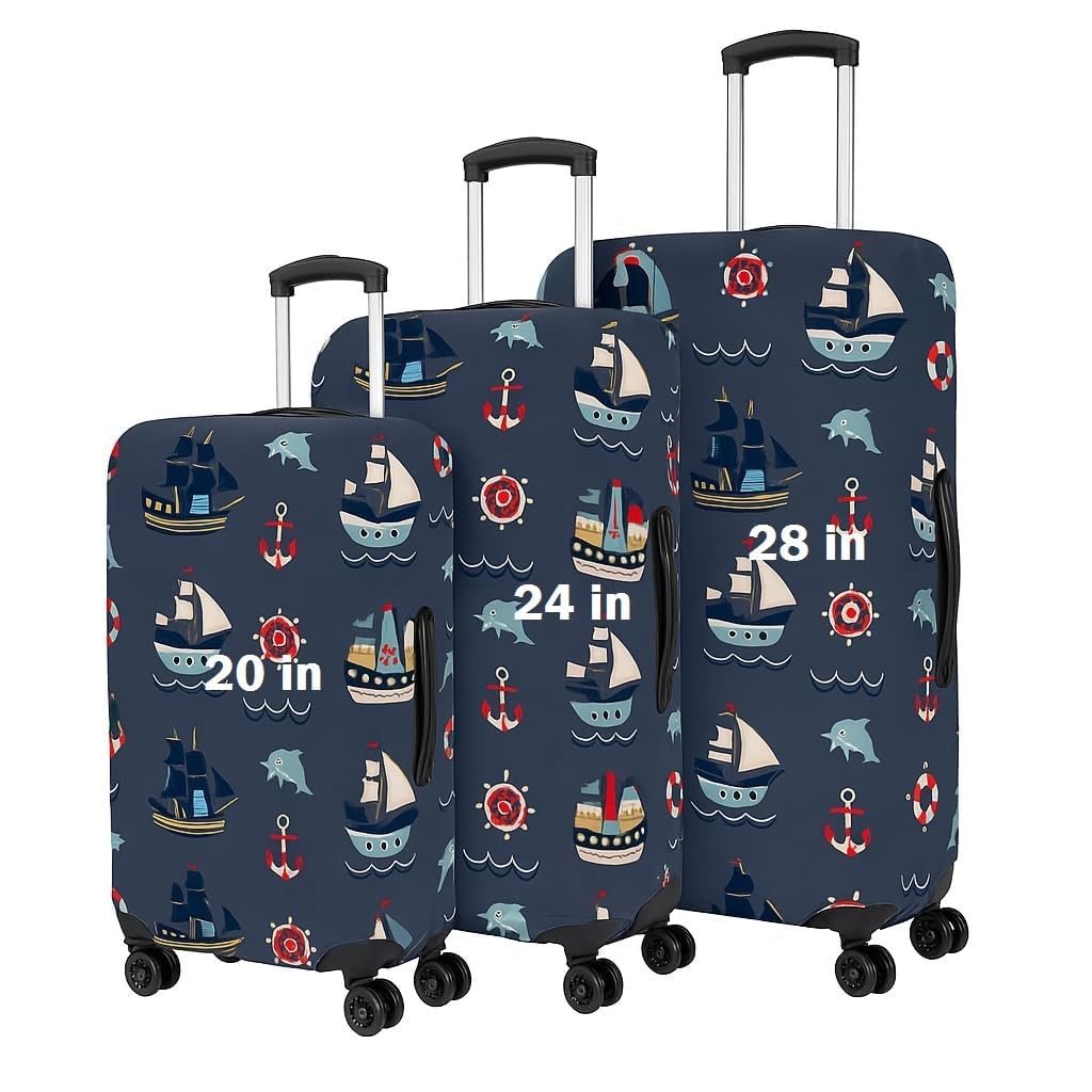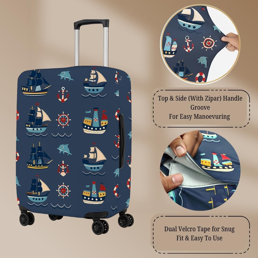 GREEVA Protective Luggage Cover Polyester Fabric with Ocean Design Large Size 28 inch =75cm, Fits 28-30 inch Bag, Washable, Dust Proof, Anti-Scratch, Easy-Fit Stretchable Luggage Trolley Bag Cover