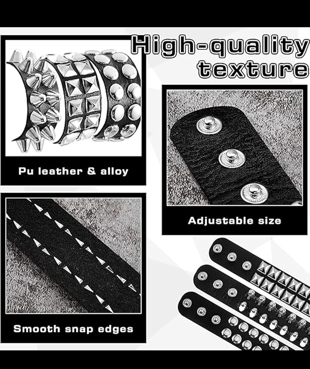 3Pcs Gothic Jewellery, Punk Jewellery Bracelet Set, Gothic Bracelets for Men Suitable for Rock Concerts and Punk Fashion Outfits