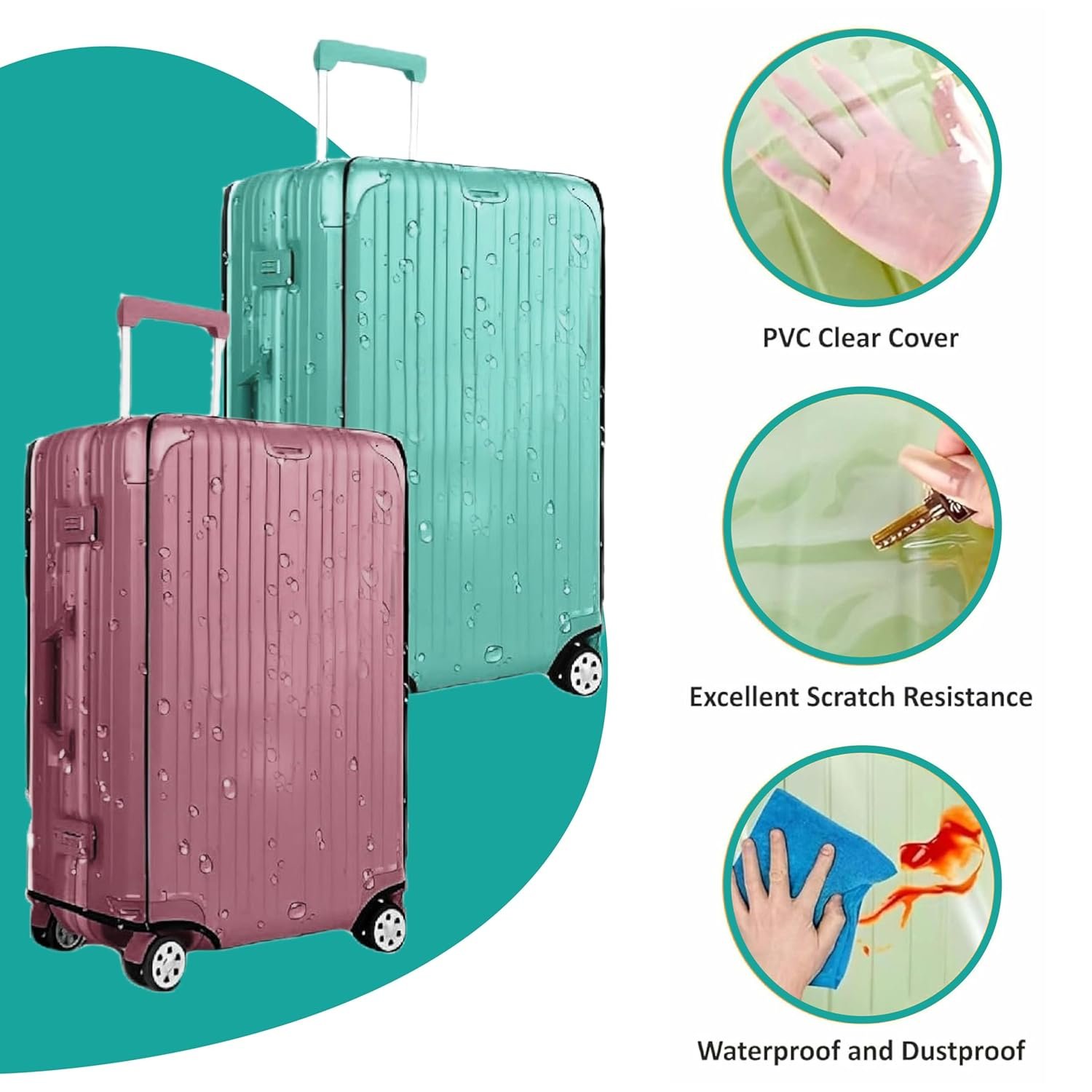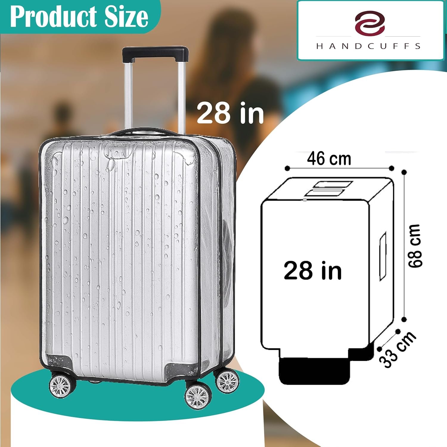 Handcuffs Trolley Bag Cover Transparent Suitcase Bag Covers Waterproof Dustproof Luggage Cover Zippered Clear PVC Suitcase Protector Covers