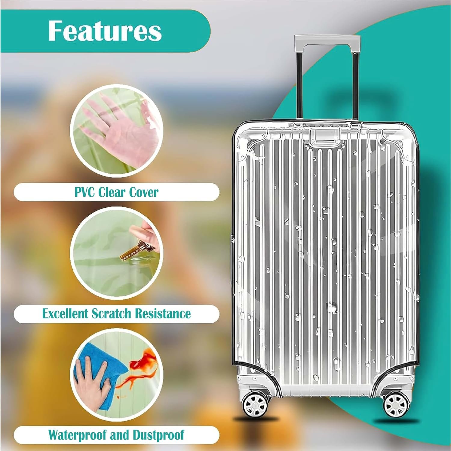 TRANSPARENT PVC PROTECTION SUITCASE COVERS — These covers for suitcases are made from premium-quality PVC material that is fully transparent, giving your luggage a sleek look while showcasing your trolley design and brand. The cover for suitcase trolley bags is waterproof and dustproof.
