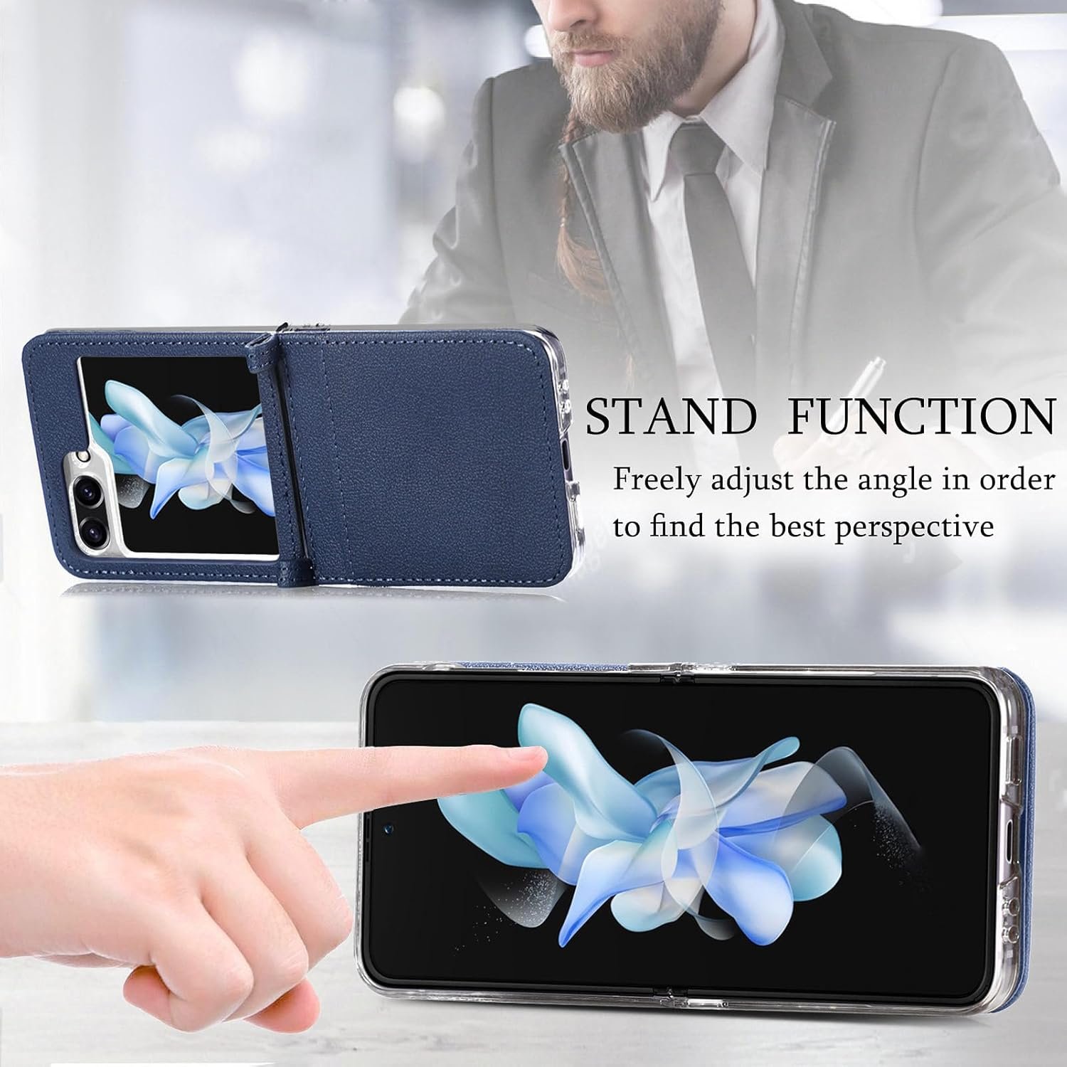 HAOTP Galaxy Z Flip 6 Case, Luxury PU Leather Wallet Protective Phone Case with Card Slots, Pocket Purse for Samsung Galaxy Z Flip 6 5G in Navy Blue