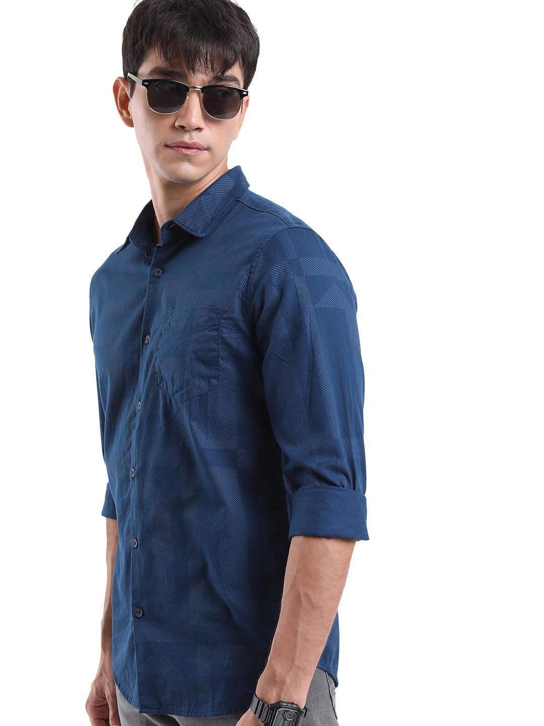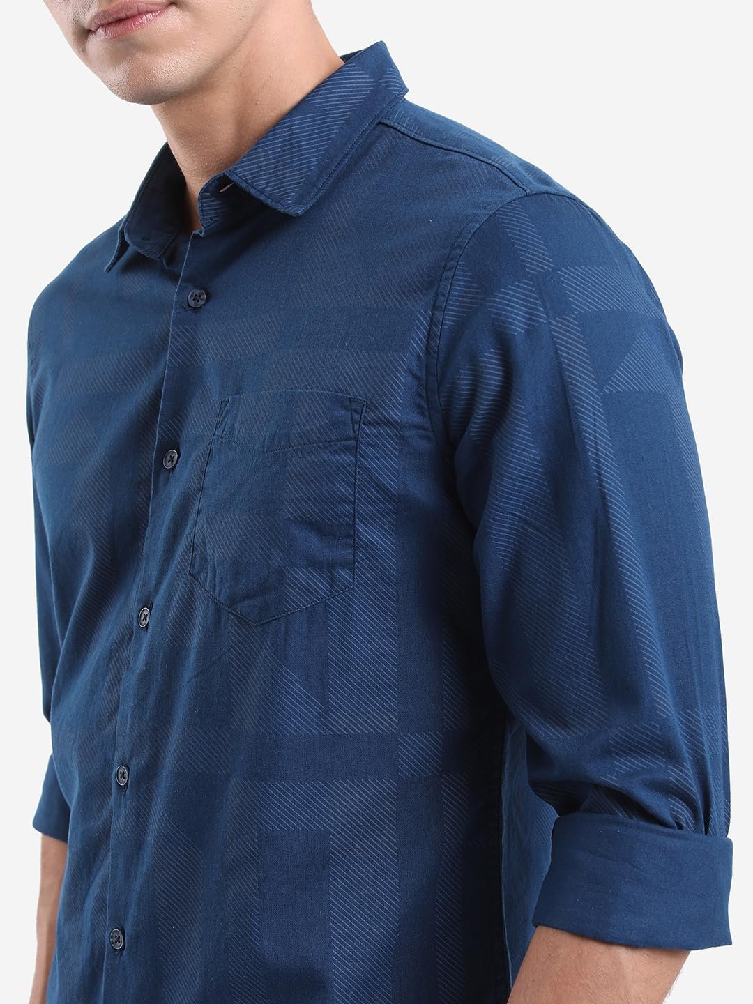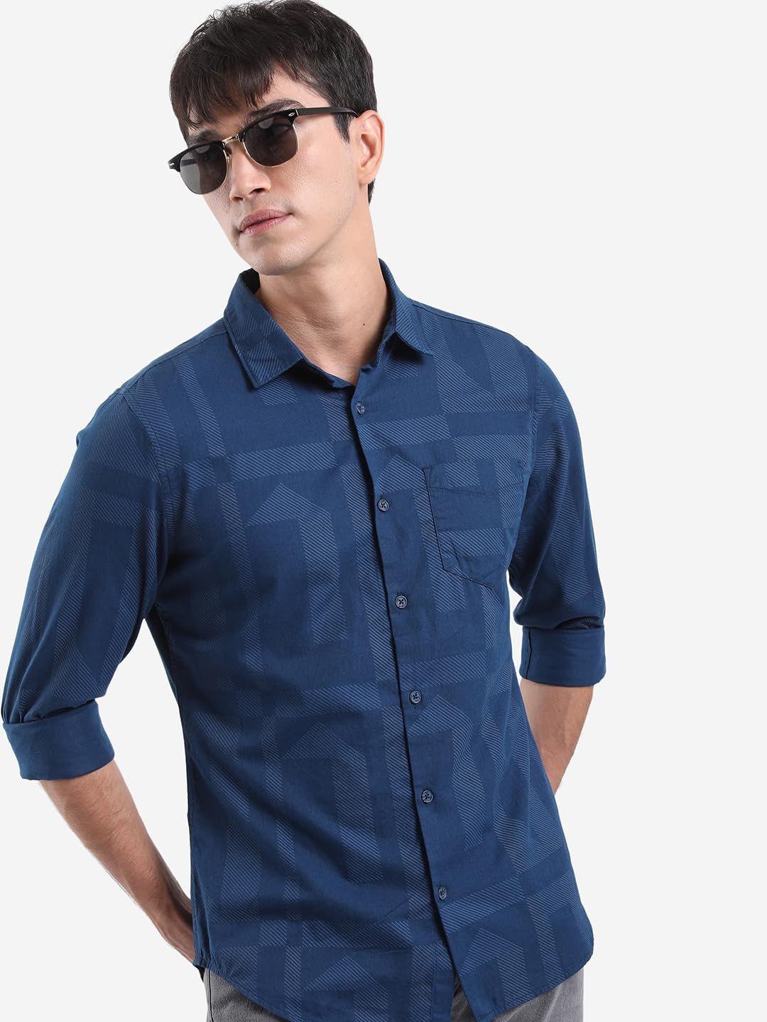 Highlander Men Navy Printed Poplin Slim Fit Shirt