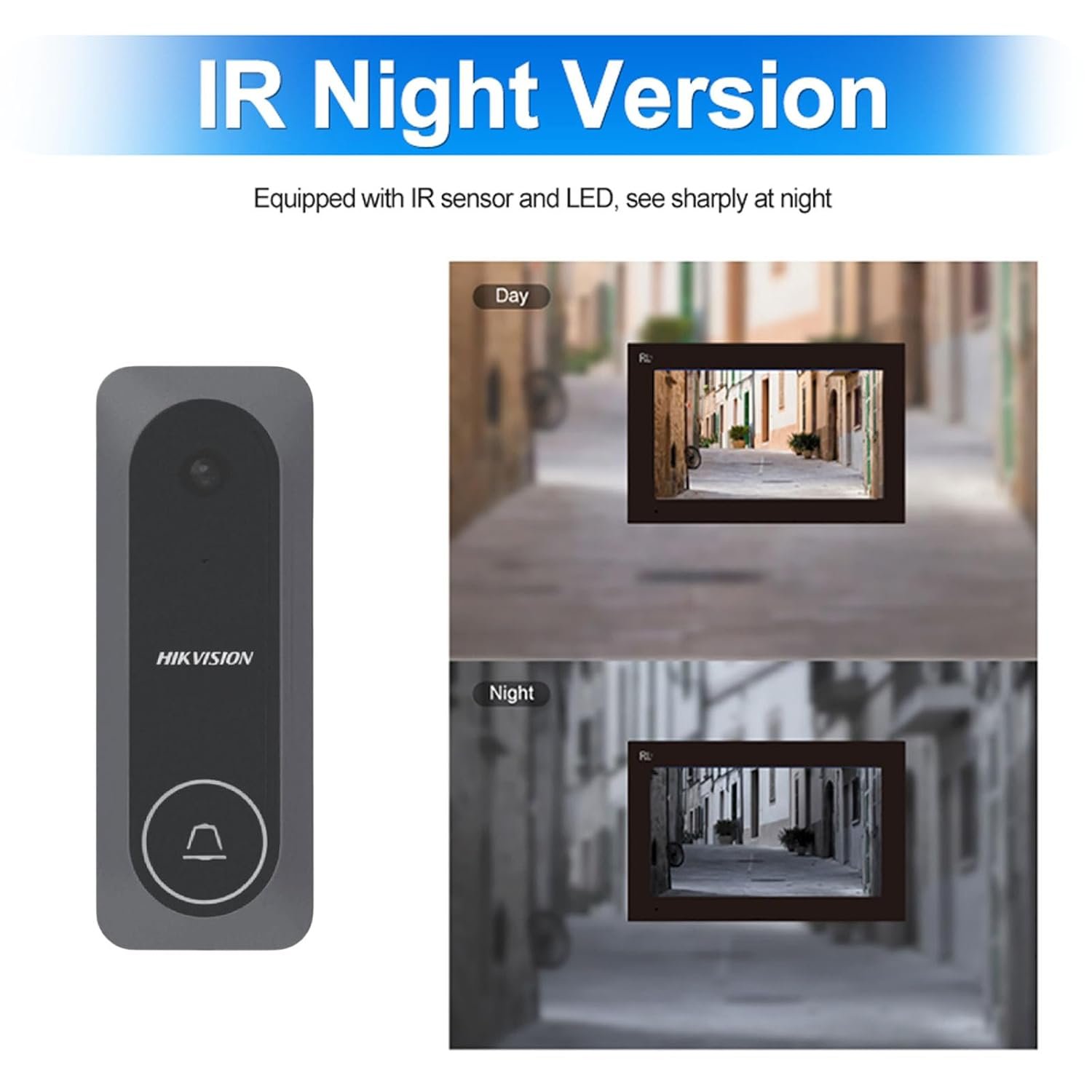 The HIKVISION DS-KIS205T is a reliable and elegant video door phone system that enhances home and office security. It features a 7-inch indoor color monitor and a durable HD outdoor doorbell camera. With real-time two-way audio, night vision capabilities, and a clear video feed, you can easily identify and communicate with visitors before granting access. Built for easy installation and reliable performance, it also supports one-touch unlocking for door access, noise cancellation, and crisp audio communication.