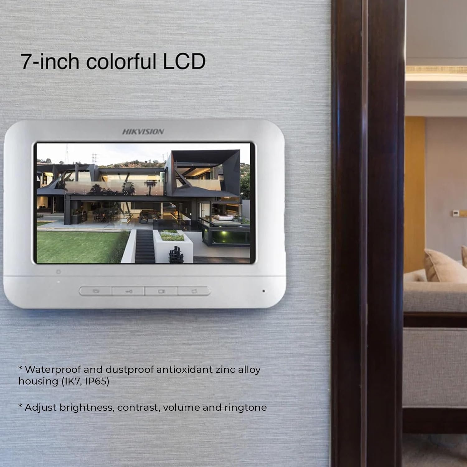 HIKVISION 7-Inch Indoor Monitor for Clear Viewing – The sleek monitor allows you to see, speak, and unlock with ease. Its high-resolution screen provides sharp and detailed visuals of your visitors.