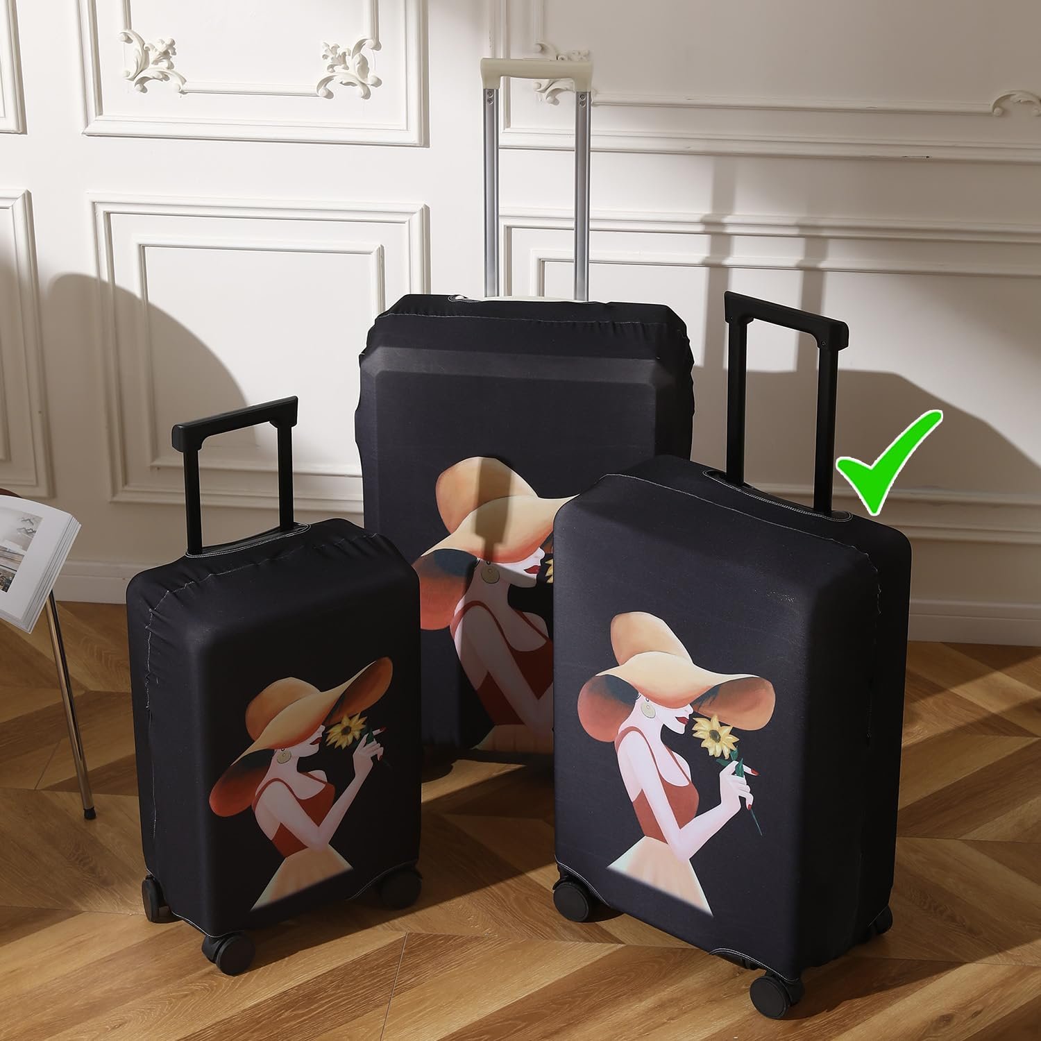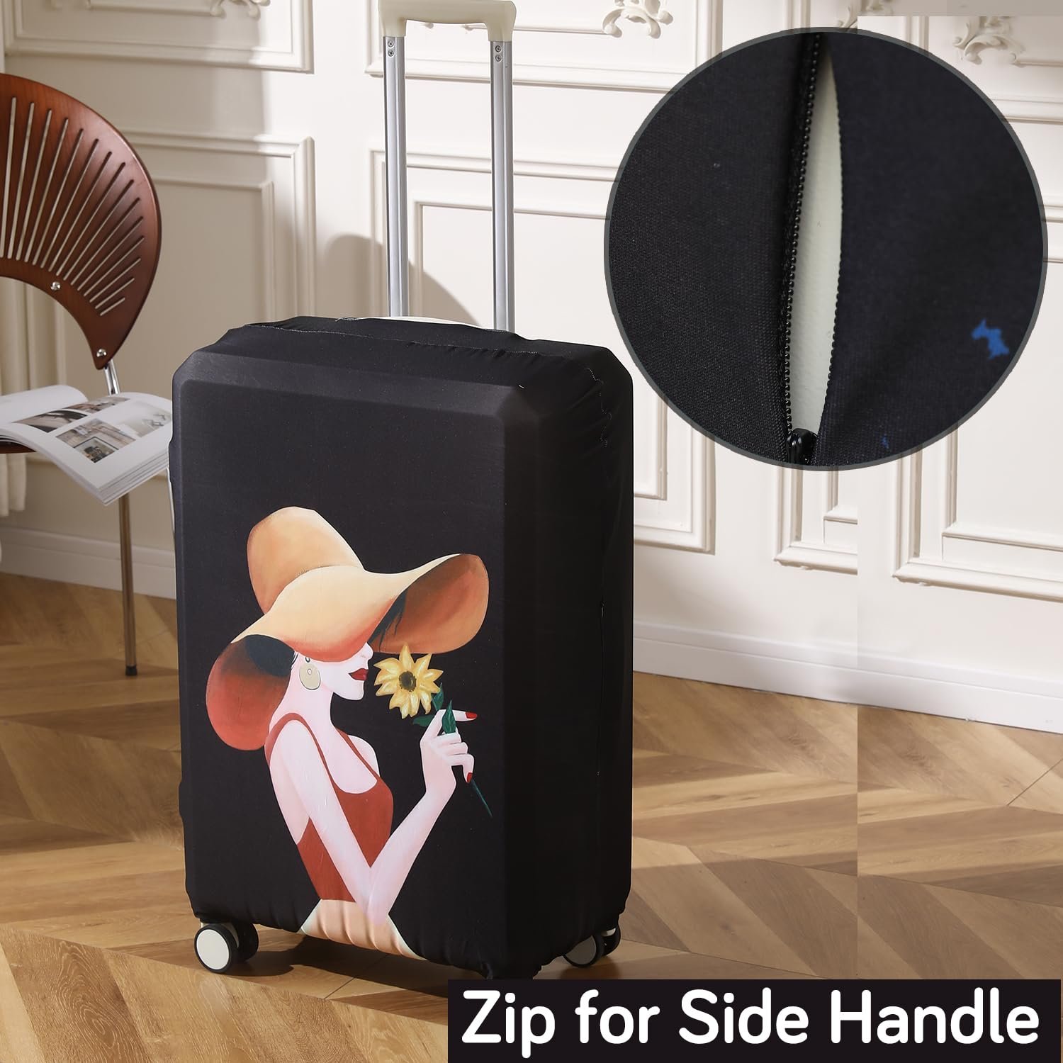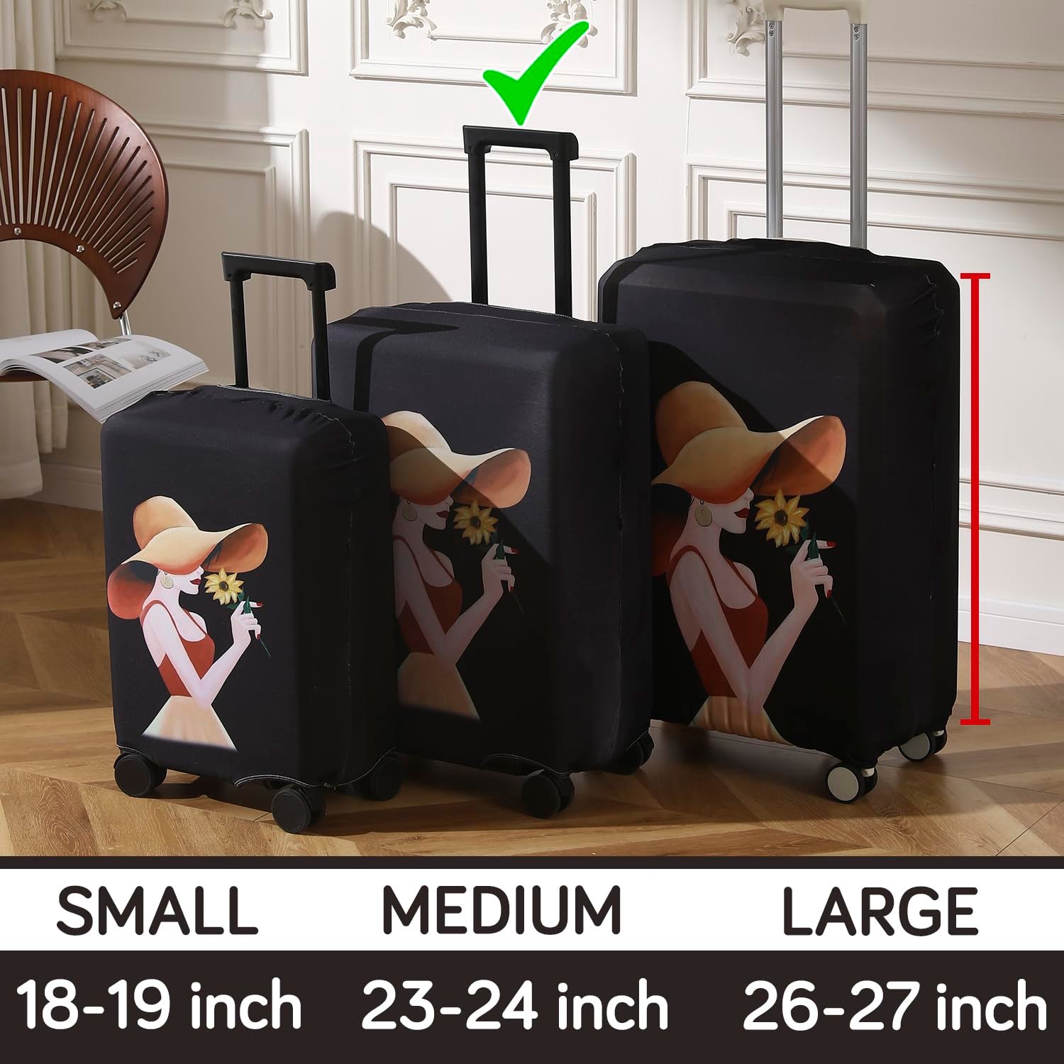 HOKIPO 180gsm Durable and Washable Suitcase Covers for Trolley Suitcase, Medium (23-24inch), Black Elegant Lady (NEW-5184-D6)