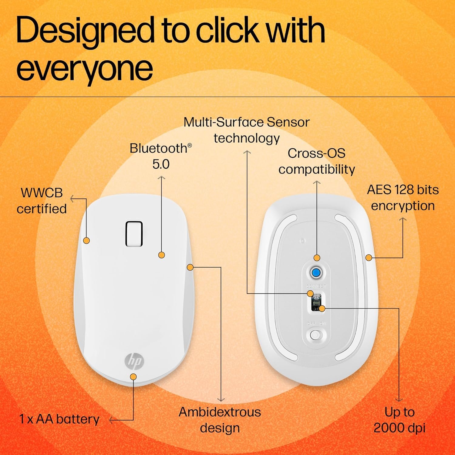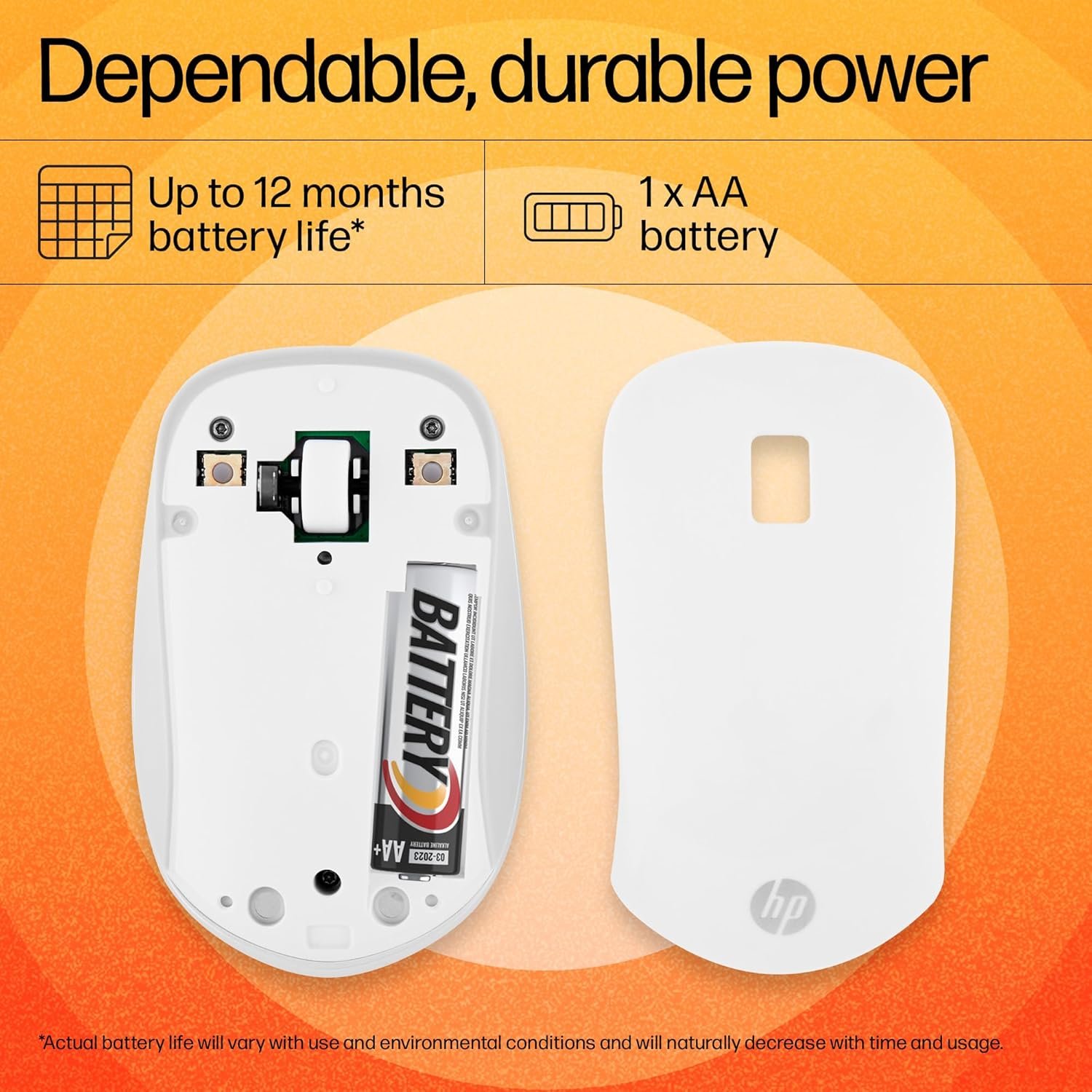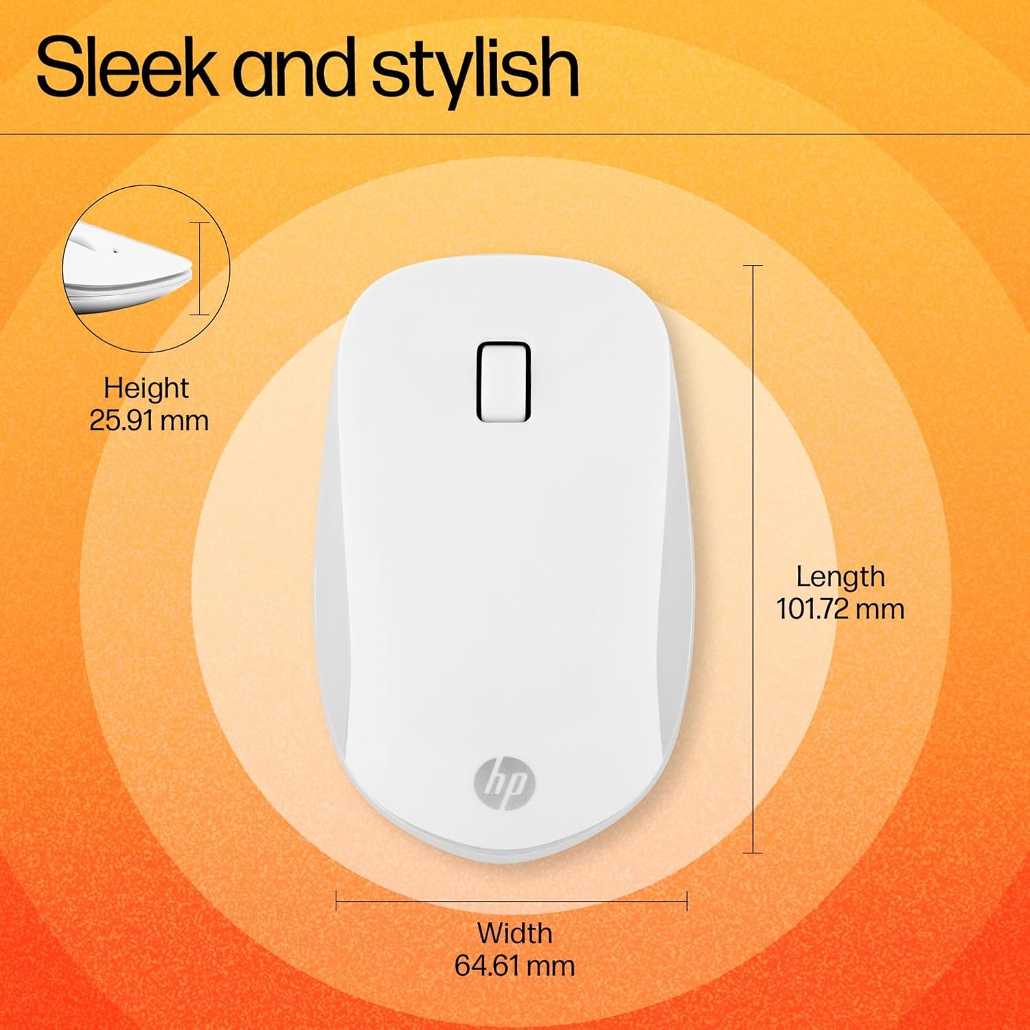 HP 410 Slim White Bluetooth Mouse/Bluetooth 5 connection/12 Month Battery life/1000-2000 dpi Multi-Surface Sensor/Compact and Ambidextrous Design