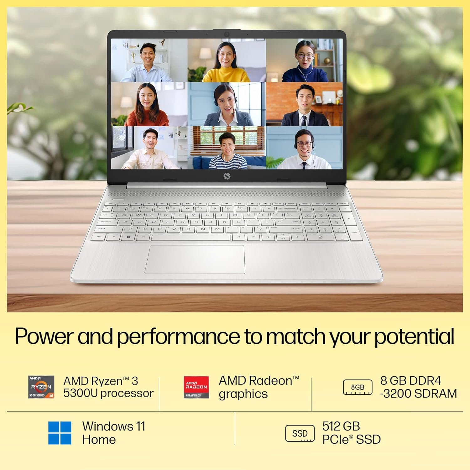 ?4-core AMD Ryzen 3 5300U?8 threads and 4MB L3 cache deliver powerful performance and swift responsiveness. The AMD Radeon graphics help you experience crisp visuals with vivid clarity.;?Upgraded memory and storage?8GB DDR4 RAM integrates a higher-bandwidth memory for smooth functioning. The high-speed 512GB PCIe NVMe M.2 SSD creates more room to work with ample storage.