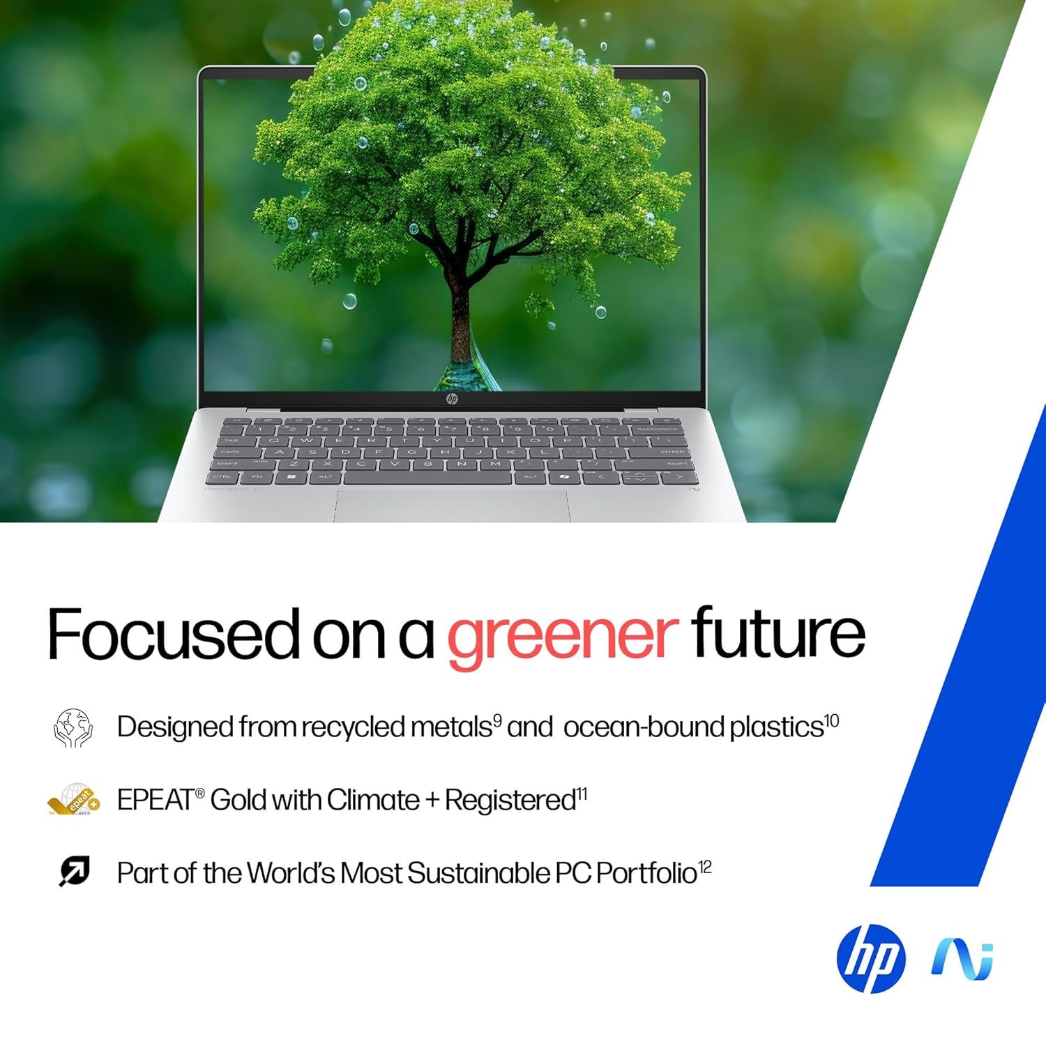 HP OmniBook 5 OLED (Previously Pavilion), Snapdragon X Processor (16GB LPDDR5x, 1TB SSD) 2K, 14”/35.6cm, Win11, M365 Basic(1yr)* Office24, Silver, 1.35kg, he0015QU, Light-Weight, Next-Gen AI Laptop