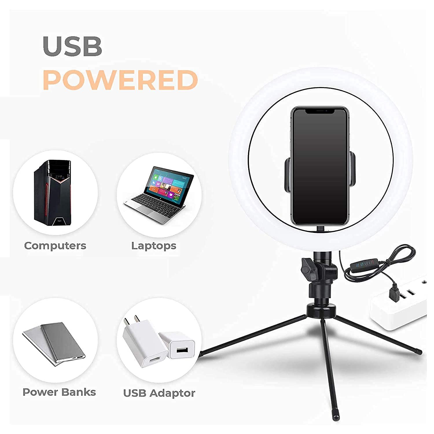 HUMBLE LED 10 Inch Ring Light with Monopod 3 Level Brightness Dimmable Lighting for Vlogging, YouTube Video, Photo Shoot Live Streaming & Makeup Compatible with All Smart Phones & Cameras