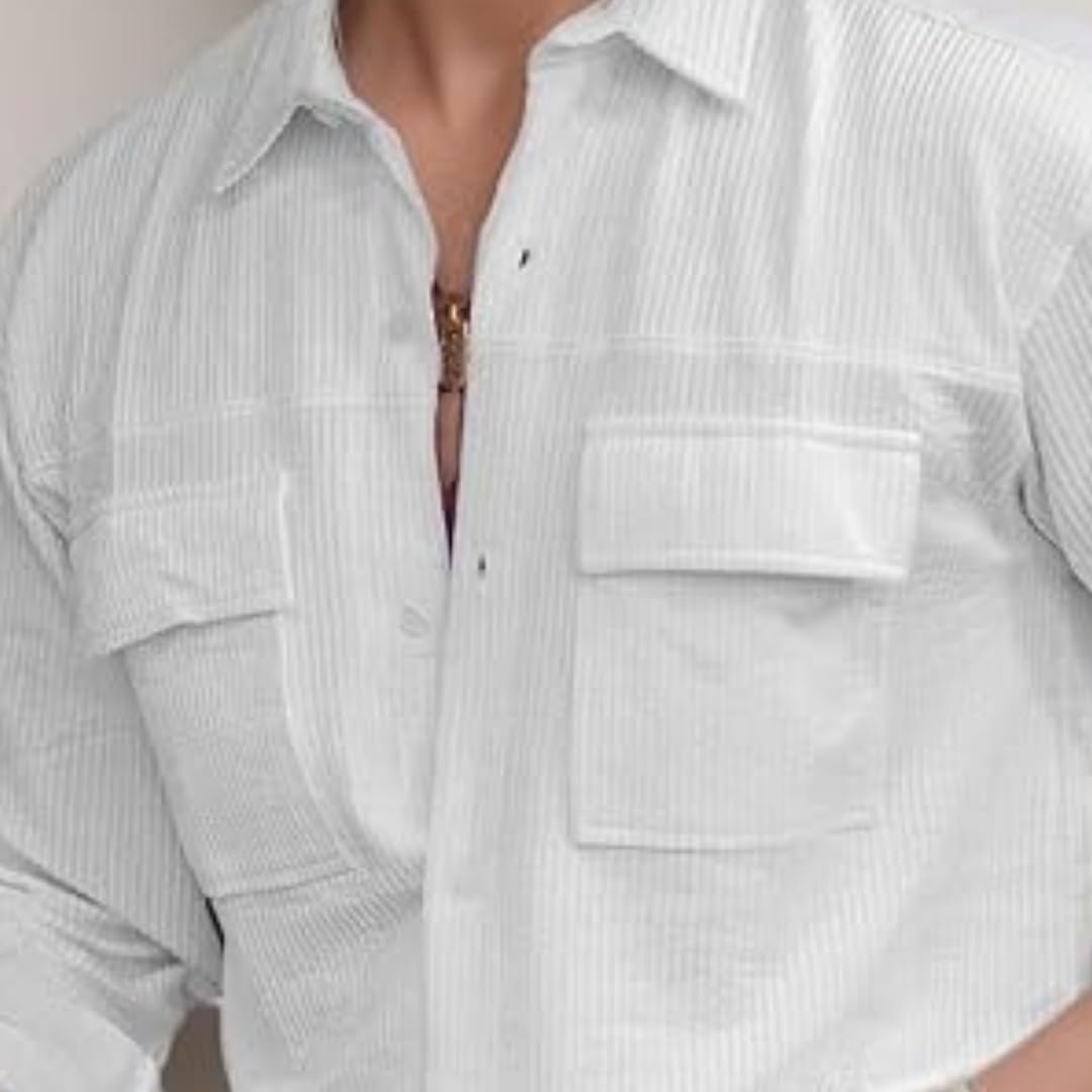 IndoPrimo Men's Regular Fit Fancy Premium Knitting Fabric Double Pocket Casual Cargo ShirtIndoPrimo Men's Regular Fit Fancy Premium Knitting Fabric Double Pocket Casual Cargo Shirt