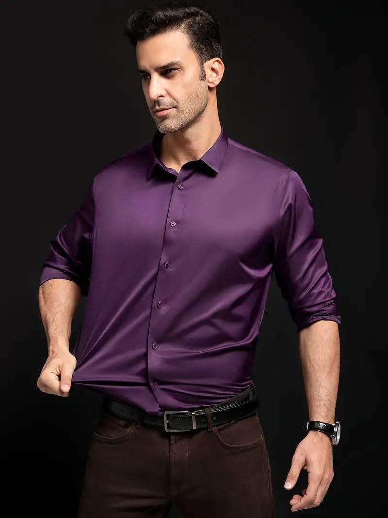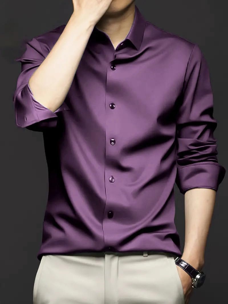IndoPrimo Men’s Stylish Solid Satin Casual Shirt for Men Full Sleeve