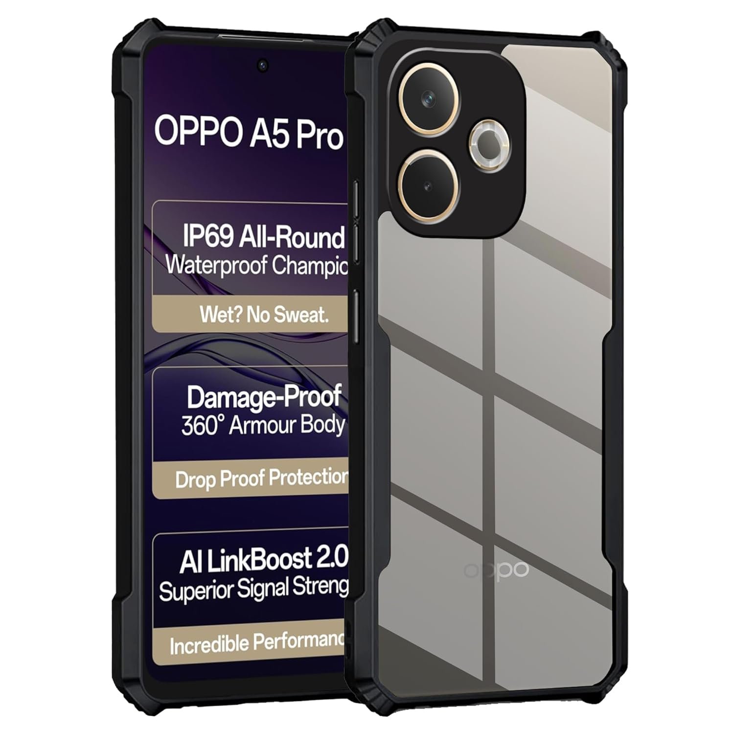 Inktree Clear Back Cover Case for Oppo A5 Pro 5G | 360 Degree Protection | Transparent Back Cover Case for Oppo A5 Pro 5G (PC & TPU, Black Bumper)