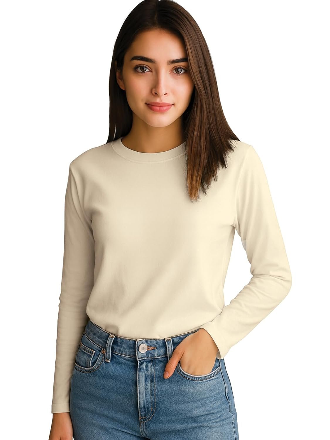 JUNEBERRY® Pure Cotton Round Neck Regular Fit Core Fashion Solid Full Sleeve T-Shirt for Women & Girls (Colors: Black, Cork, Green, Navy, Swanwhite & White)