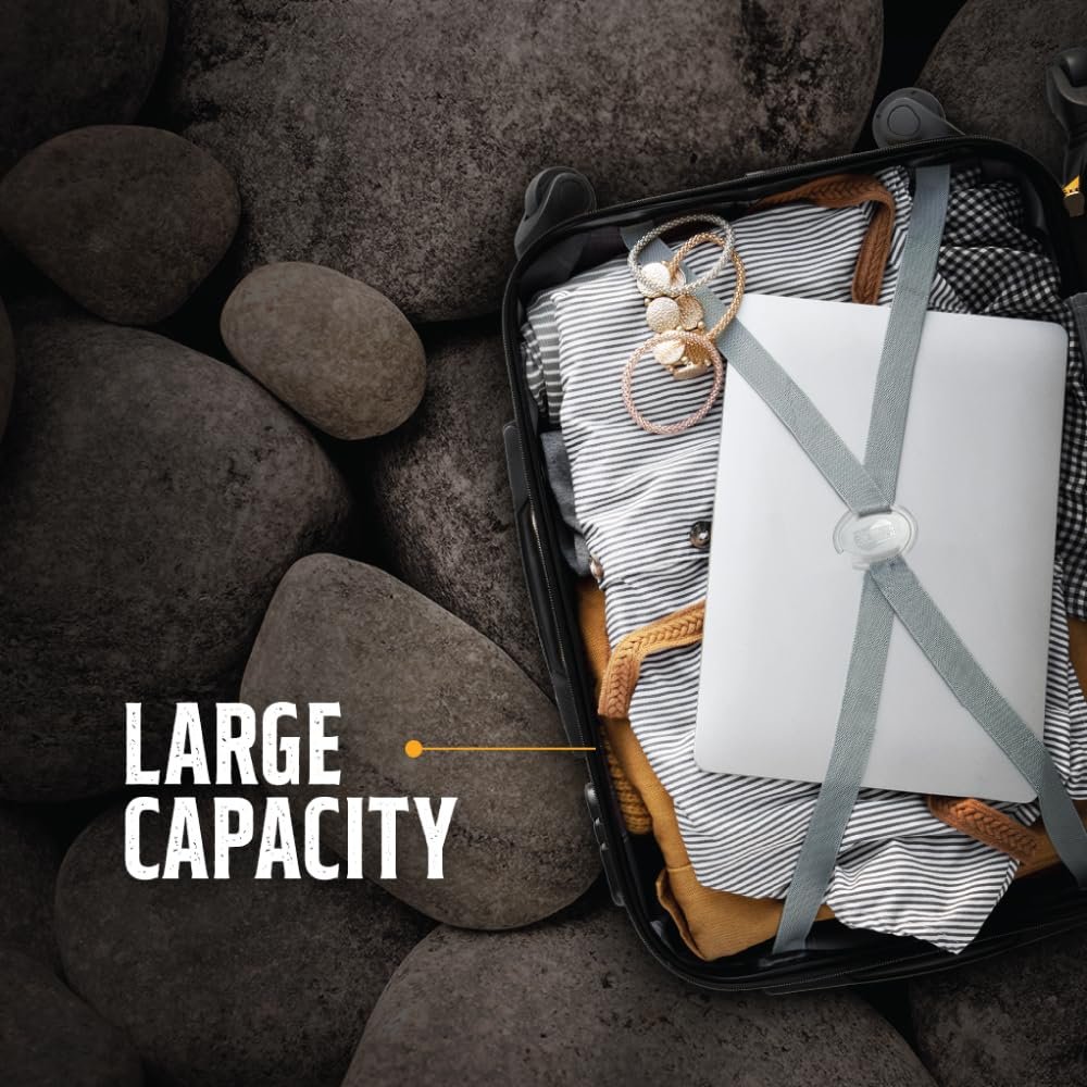 Cross ribbons in bottom compartment and U-shaped pocket for maximum packing space