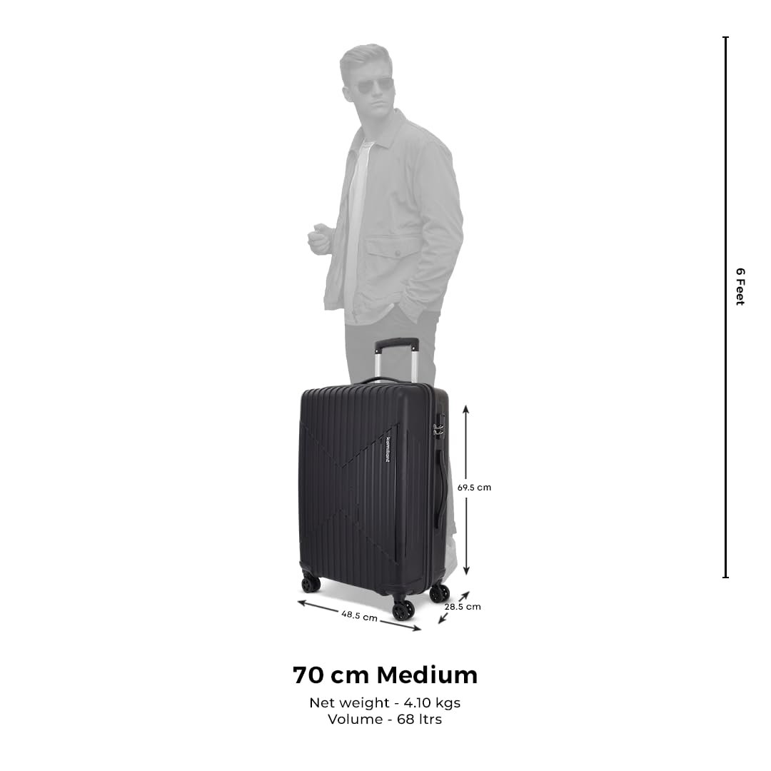KAMILIANT by American Tourister Medium Savvy 70 Cms Check-in (PP) Hard Sided 8 Wheels Spinner Luggage/Suitcase/Trolley Bag (Black) (Double Wheel)