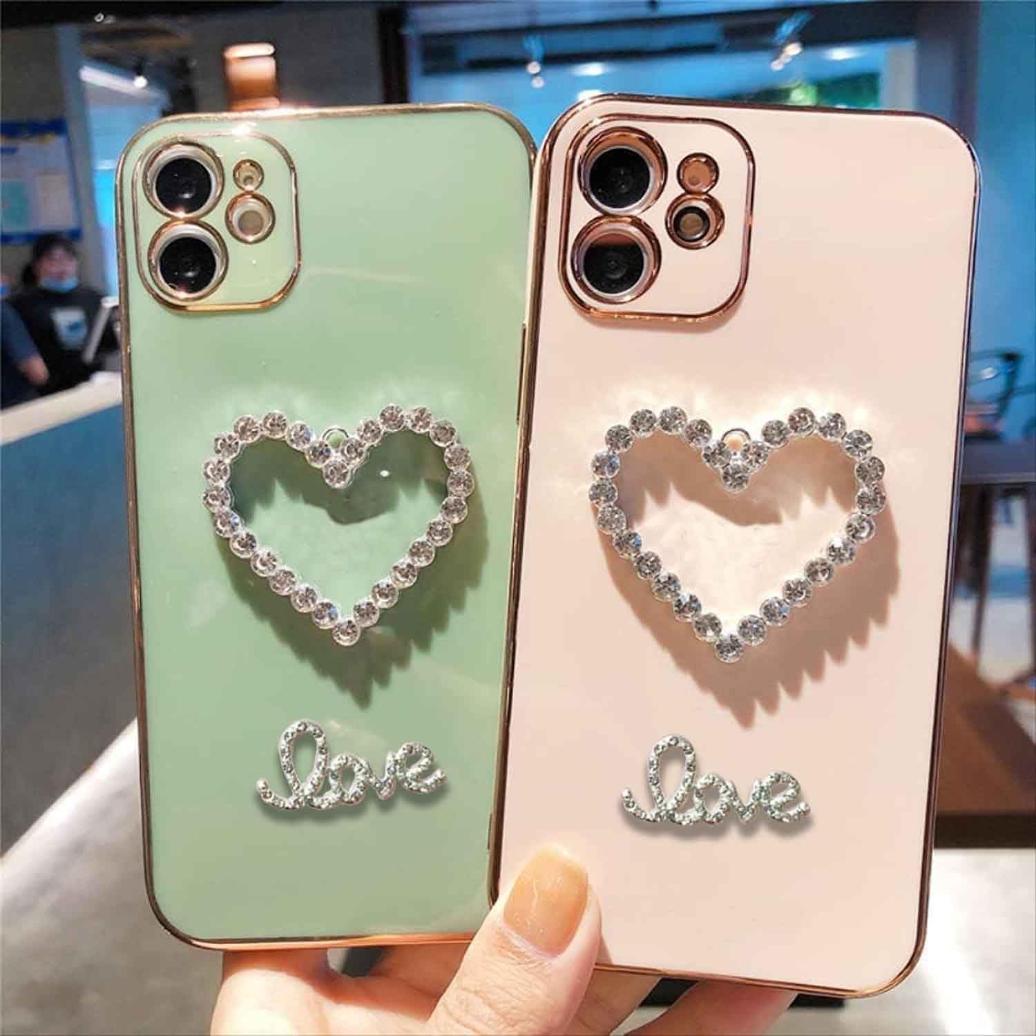 Cute Love Heart Diamonds Shape attached. case stands out and gives confidence and aesthetic taste to its master. It always stays dry and clean, as it is very easy to remove dust and dirt from the case.