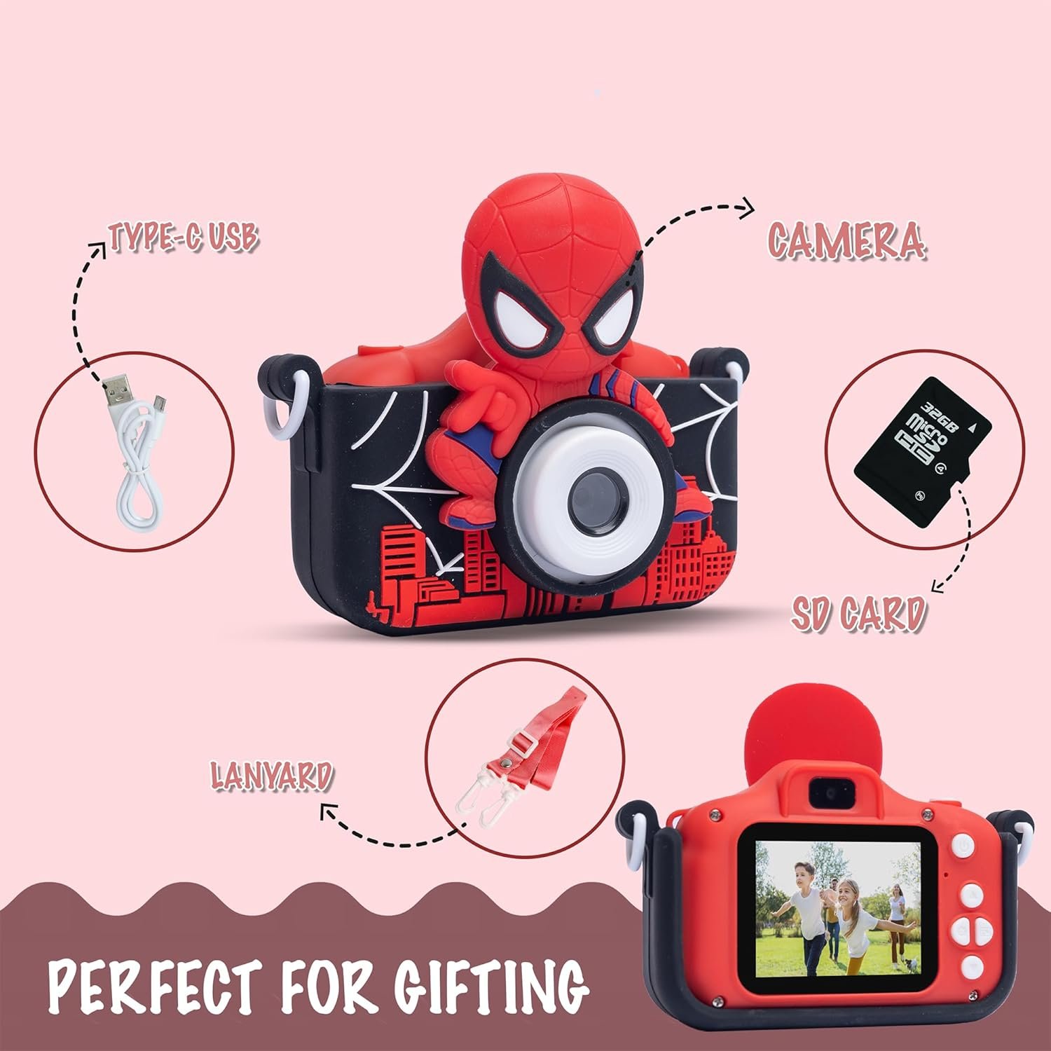 Kids Digital Camera 1080P HD Spider Man 10.8MP Mini Video Camcorder For Boys & Girls, Age 4, 5, 8-10| 2-Inch HD Screen, Selfie | Child-Safe Design | Expandable Up To 32GB (Red)