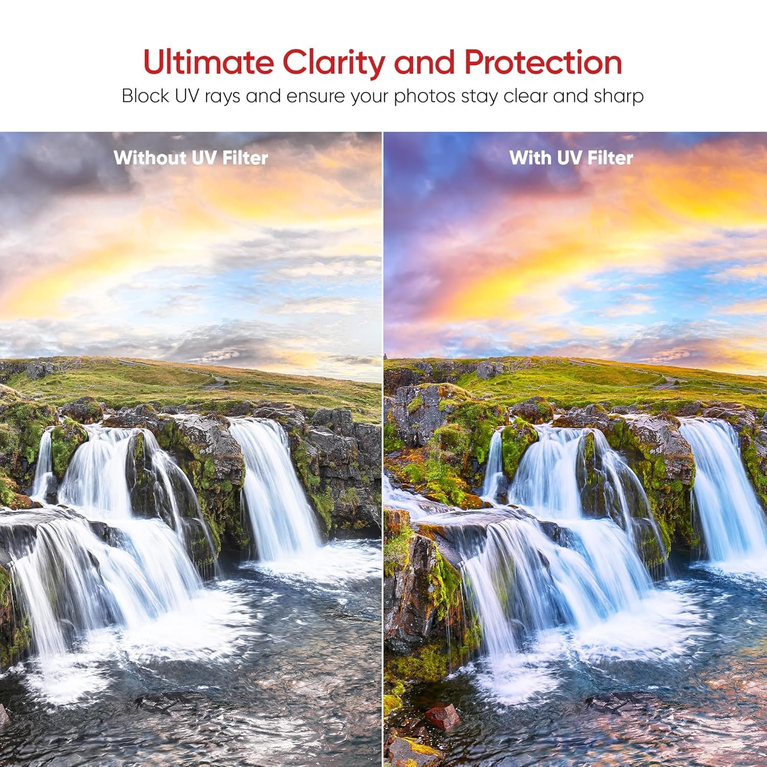 Enhanced Image Quality: Reduces UV light, preventing haze and distortion, for sharper, more vibrant images, especially in outdoor or bright lighting conditions.