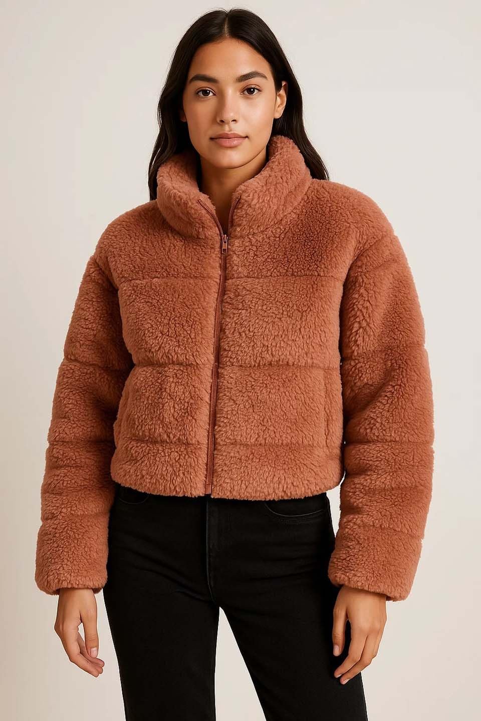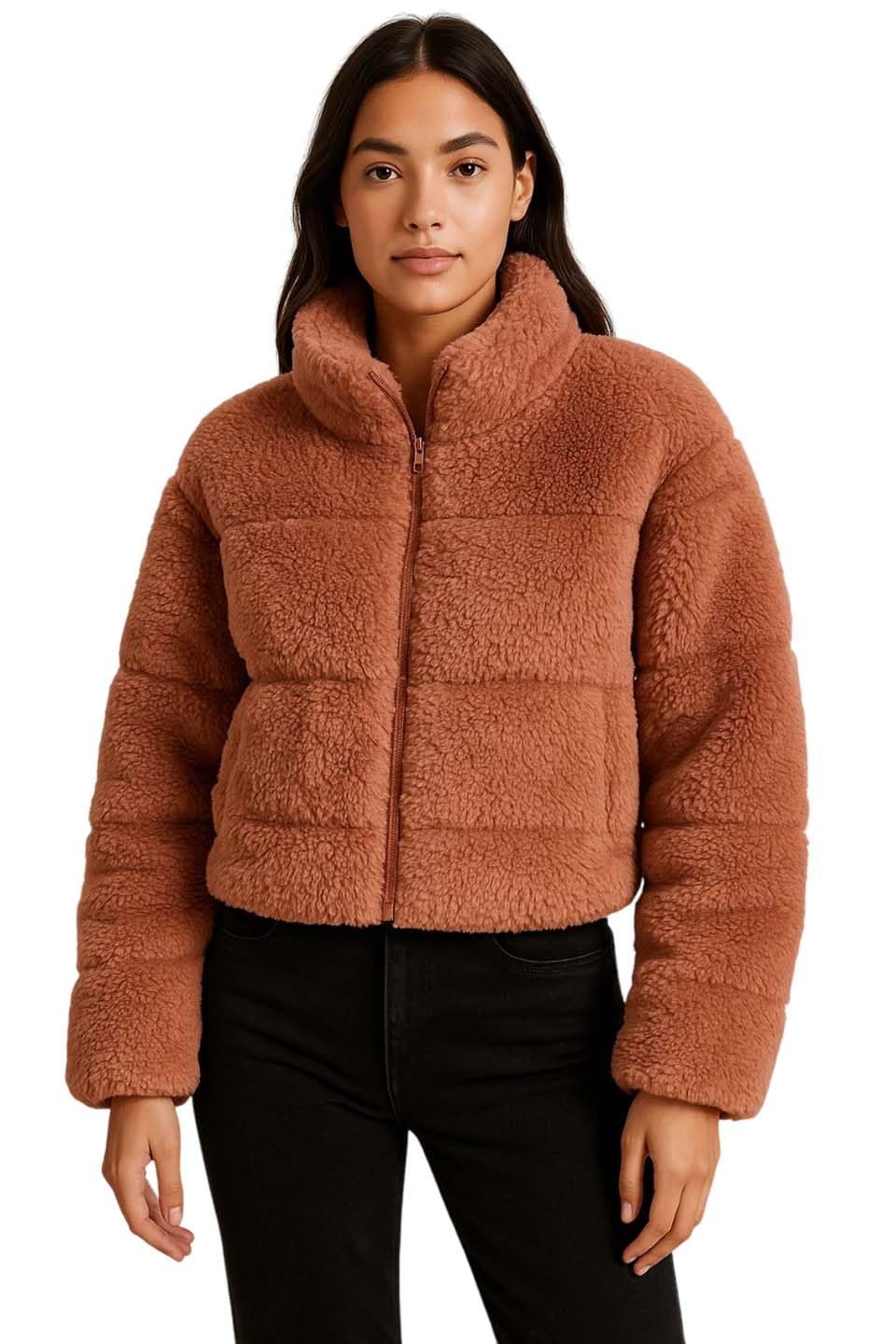 KOTTY WOMENS presents a jacket made of coral fabric and Sherpa lining that delivers softness, warmth, and timeless fashion appeal.