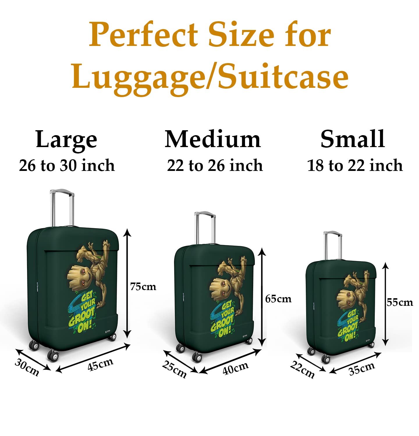 Kuber Industries Marvel I Am Groot Luggage Cover | Polyester Travel Suitcase Cover | Washable | Stretchable Suitcase Protector | 22-26 Inch | Medium | Green