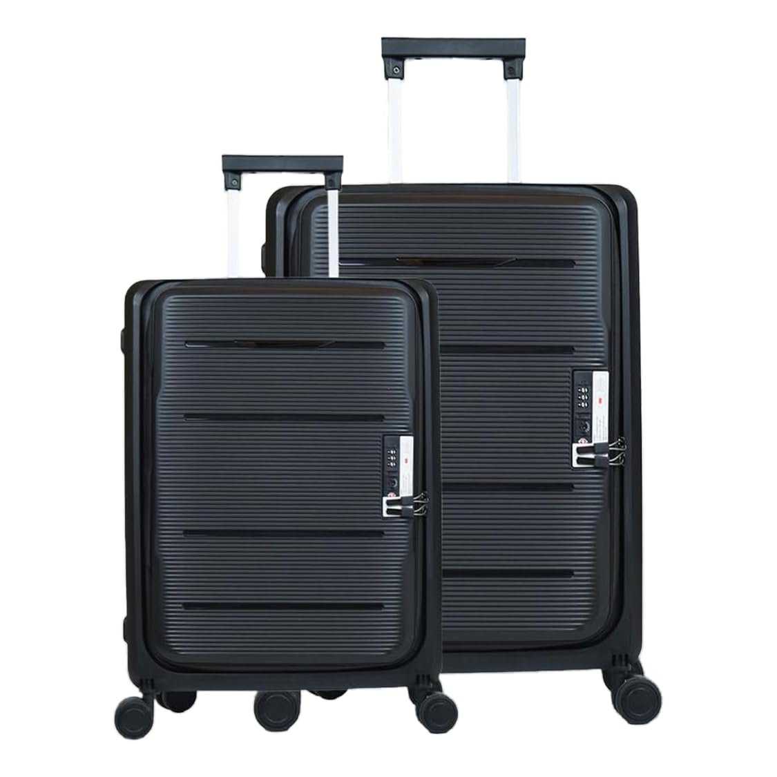 Kuber Industries Plastic Hard Shell 8 Wheels Double Spinner Luggage Bag | Trolley Bags for Travel | Collapsible Luggage Bag | 20B-24B Inch | Black, Small