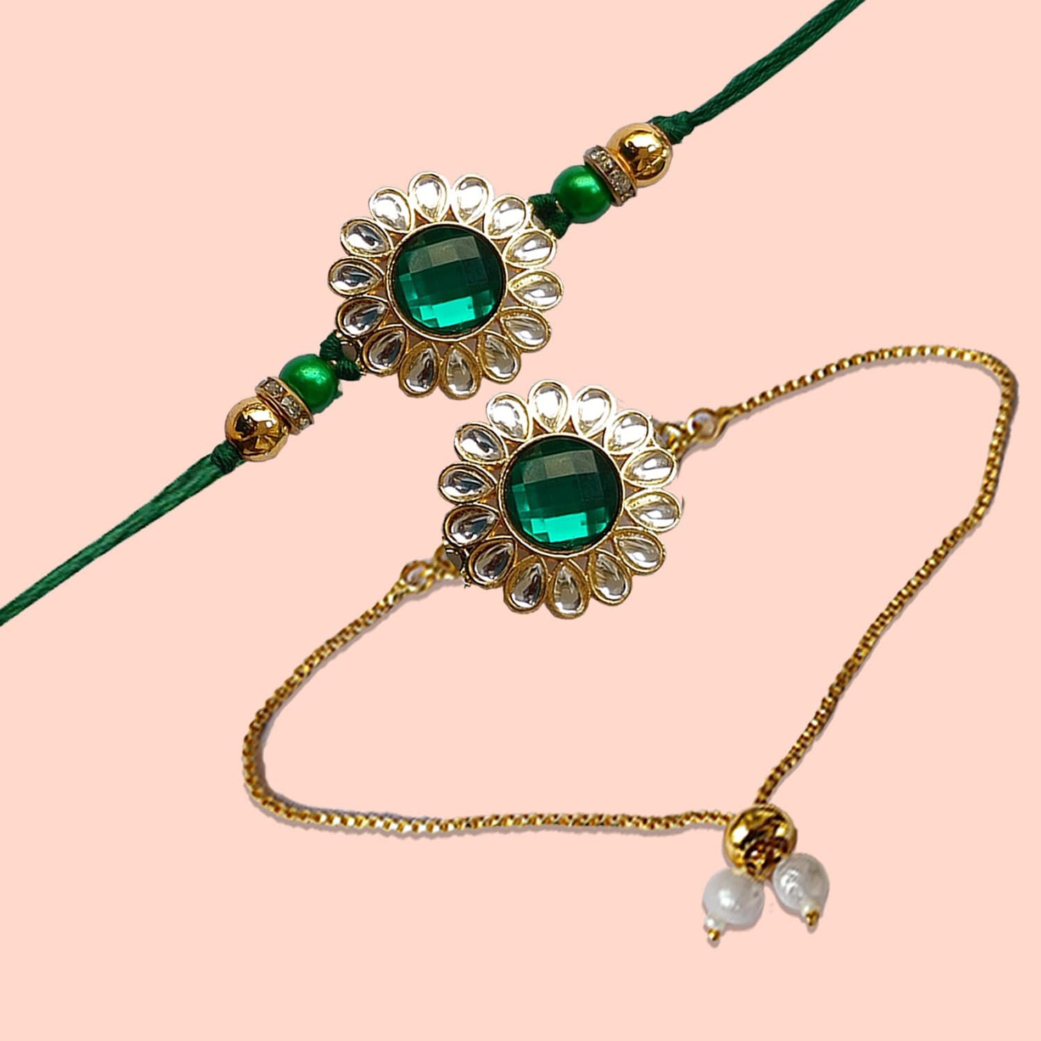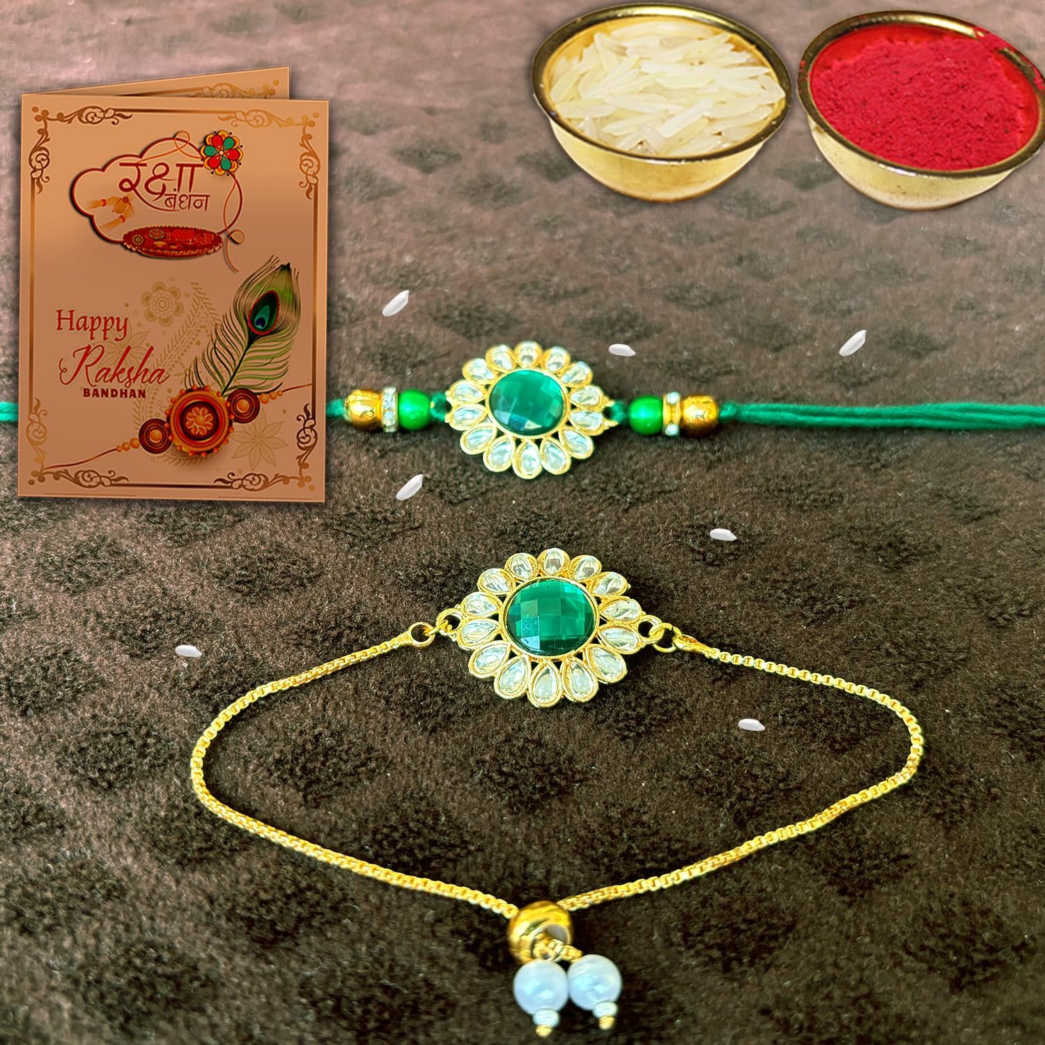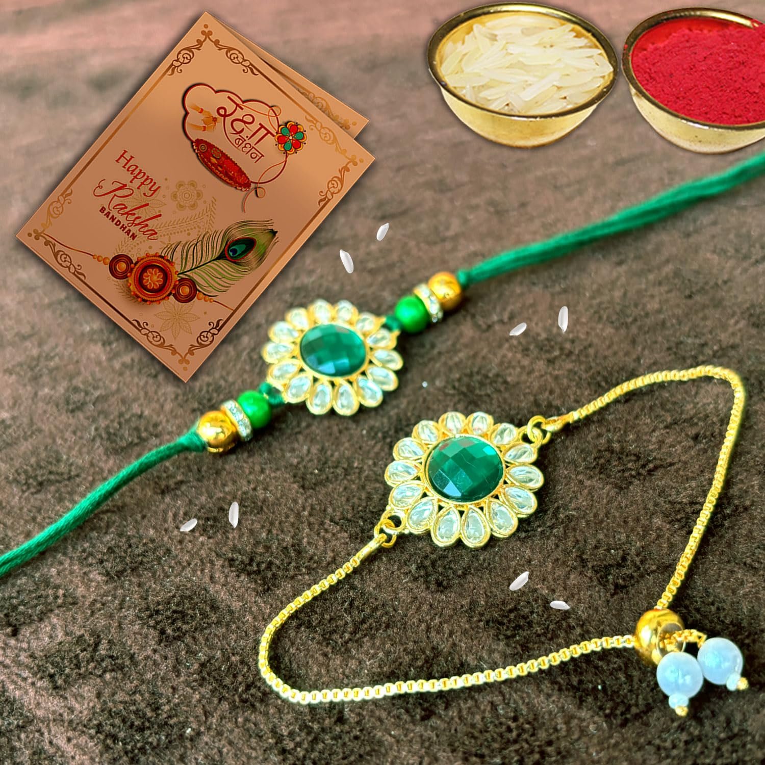 Kundhan Rakhi Combo With Roli chawal and Rakshabandhan Greeting card For Man(1G_GBR)