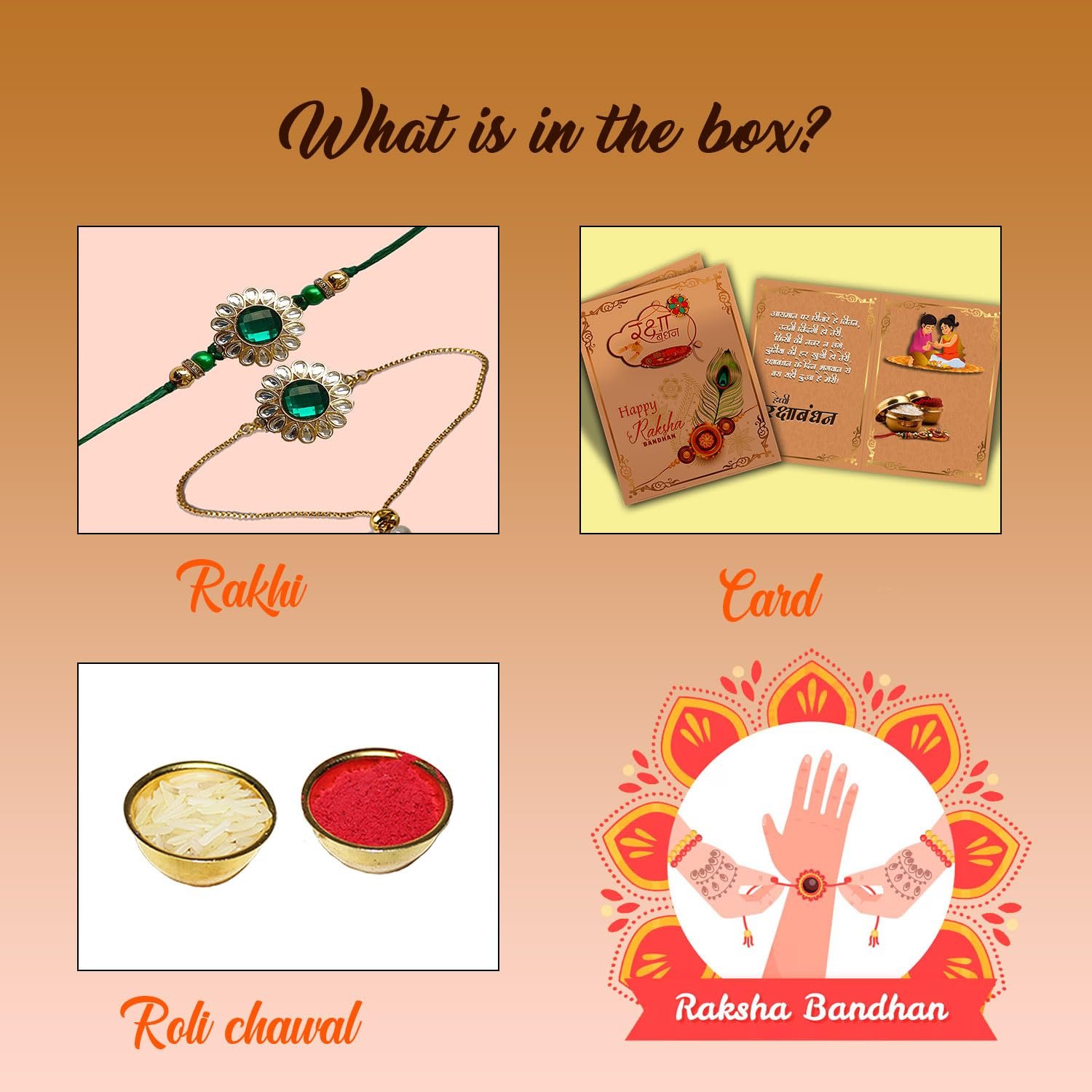 Celebrate the sacred bond of love and protection with this Premium Handcrafted Rakhi for your beloved brother. Designed with utmost care, this Rakhi features a blend of traditional elegance and modern aesthetics, making it a perfect choice for Raksha Bandhan 2025.Each Rakhi is lovingly made using skin-friendly, durable materials and comes complete with Roli and Chawal—the essentials of the Rakhi ceremony. The Rakhi arrives in a gift-ready, elegant packaging, making it a heartfelt gift that speaks volumes of your affection.Whether your brother is near or far, send him your blessings with this unique Rakhi that symbolizes your eternal bond. Suitable for all ages, this Rakhi is a timeless token of love, beautifully blending culture and tradition.
