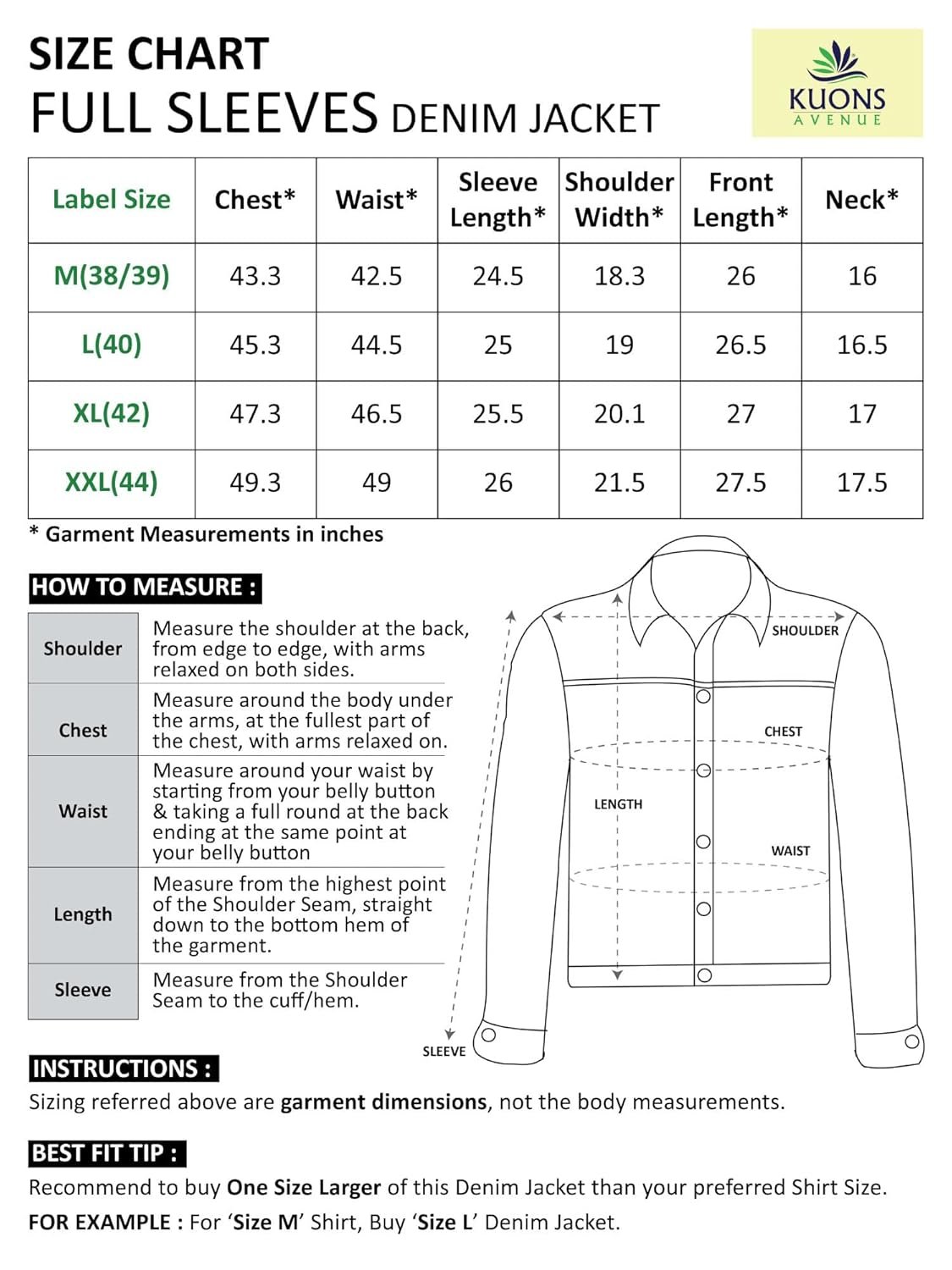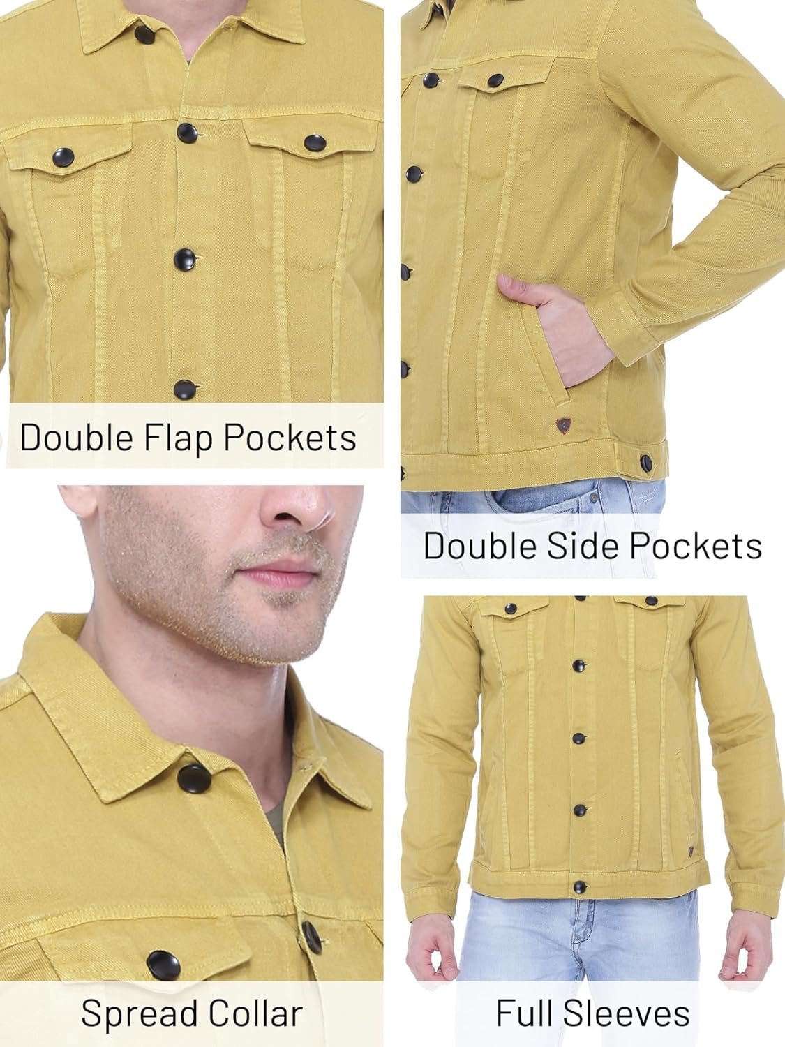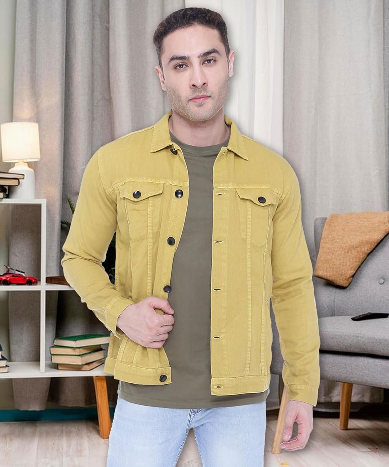 Upgrade you Wardrobe with this Stylish Denim Jacket by Kuons Avenue. Keep your denim-on-denim game in check with these trendsetting open front Denim Jacket from the house of Kuons Avenue. The eye-catching spread collar and long sleeves, 2 Button Flap Pocket At Chest With Button Closure, 2 Side Slant Pockets And Metal Buttons of these jackets will enhance your appeal. Make a style statement for yourself this season by wearing these trend alert denim truckers that feature stunning colour and classic pattern yet tailored look. These jackets from Kuons Avenue can be worn with distressed denims and a modern tee for a laid-back casual outfit.