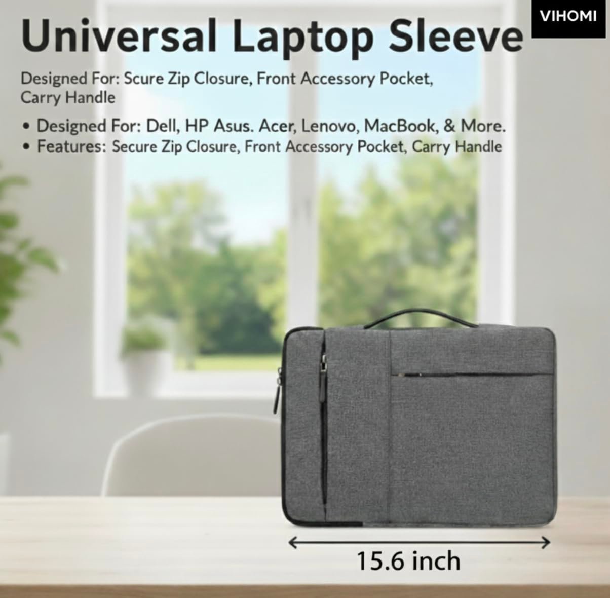 Protect your laptop in style with the VIHOMI Laptop Sleeve (13.3″–15.6″), engineered to combine elegance, functionality, and superior protection. Made from premium waterproof polyester fabric, this sleeve shields your device from accidental spills, dust, and daily wear, keeping it looking brand new for longer. The soft, shockproof inner lining provides enhanced cushioning against drops, bumps, and scratches, ensuring your laptop remains safe wherever you go. Its dual-purpose design allows you to use it as a sleek laptop sleeve or a handy briefcase, making it ideal for office professionals, college students, and travelers alike. Compact yet spacious, this sleeve features a front utility compartment for storing essentials such as your charger, mouse, cables, pens, or notebook — keeping everything neatly organized. The lightweight and slim profile makes it easy to carry by hand or slide into a backpack without adding bulk. Designed with universal compatibility, it fits 13.3-inch to 15.6-inch laptops from all major brands including HP, Dell, ASUS, Lenovo, Acer, and Apple MacBook. The minimalistic yet modern design gives it a professional appeal that complements any work or travel setup. Choose the VIHOMI Laptop Sleeve for a perfect blend of durability, protection, and sophistication — your laptop’s everyday armor for a professional, on-the-go lifestyle.
