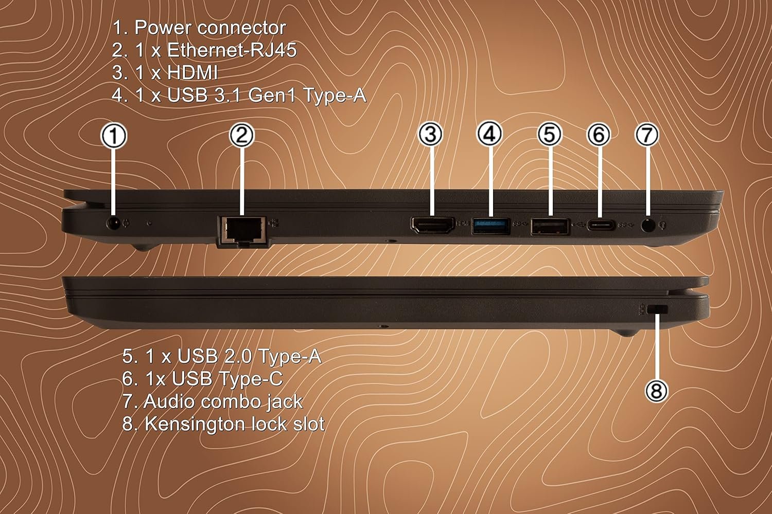 Ports: 1x USB 2.0 Type-A | 1x USB 3.1 Gen 1 Type A | 1x USB Type-C | 1x HDMI | 1x 4_IN_1_CARD_READER | 1x Ethernet RJ-45 (LAN Port) | 1x Audio combo jack