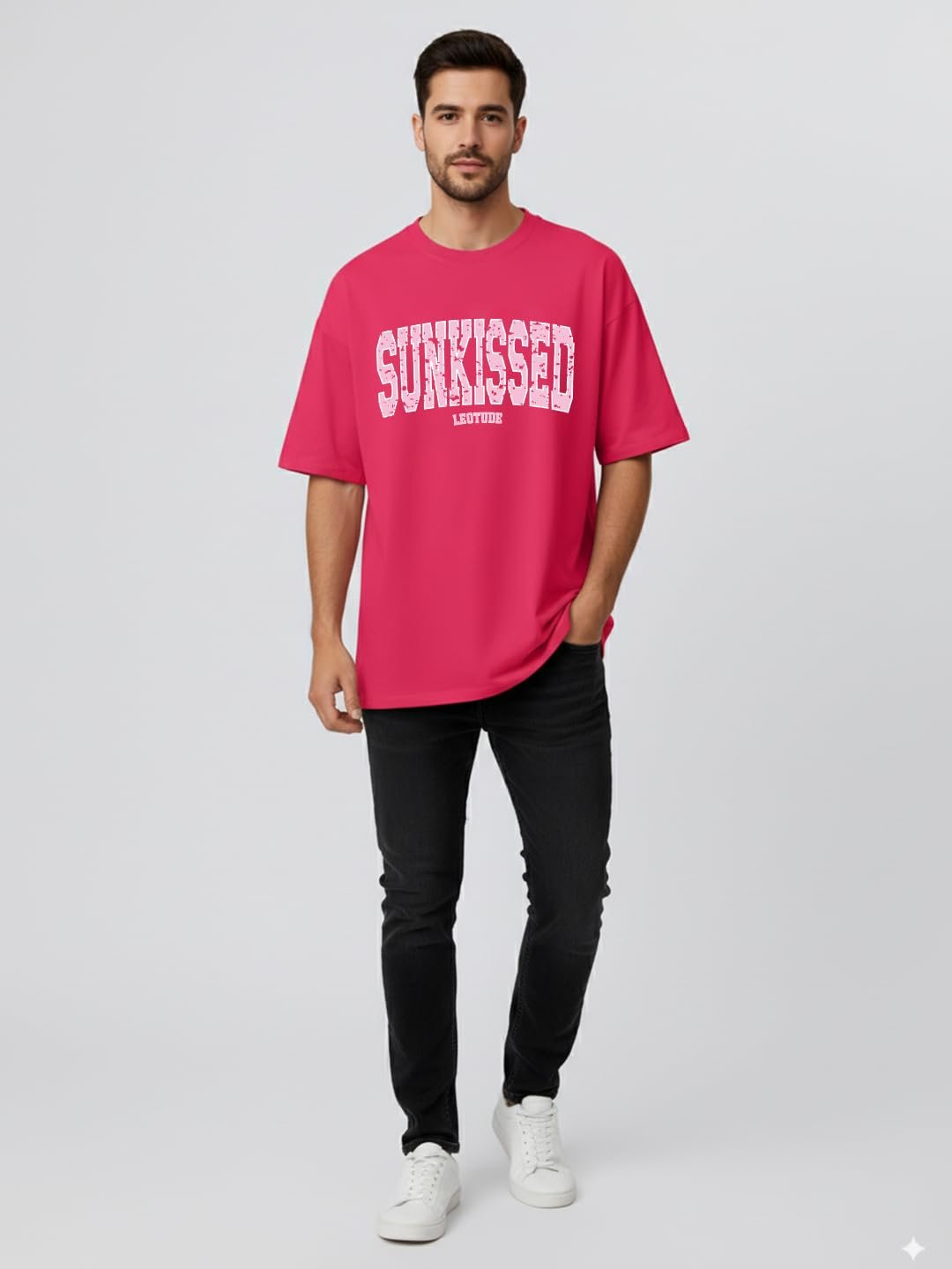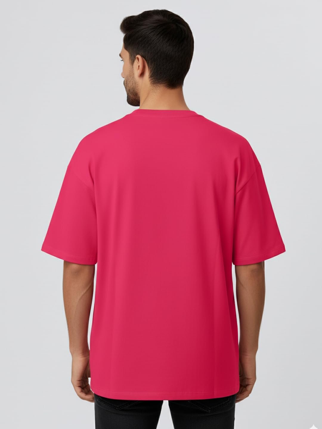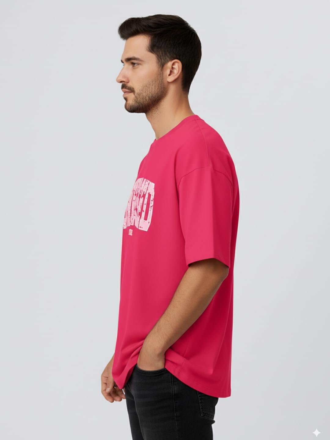 LEOTUDE Oversized Half Sleeve Cottonblend Graphic Print Round Neck Drop Shoulder Baggie Tshirt for Man (Color Pink)
