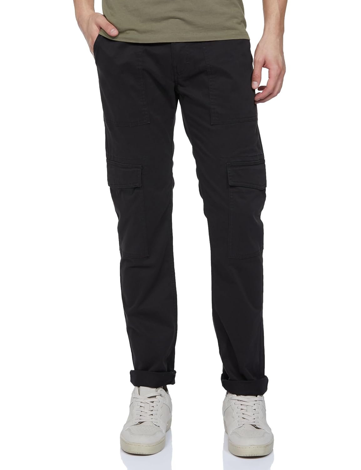 Step into utility-led style with these green cargo trousers from Levi’s. Cut in a slim fit with a mid-rise waist and crafted from cotton, these men’s trousers offer a clean, functional look with lasting comfort. Solid pattern for versatile wear Slim fit with mid-rise waist Six pockets for practicality Secure zip closure