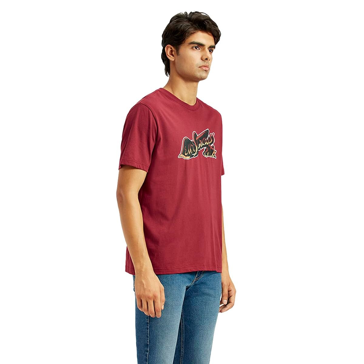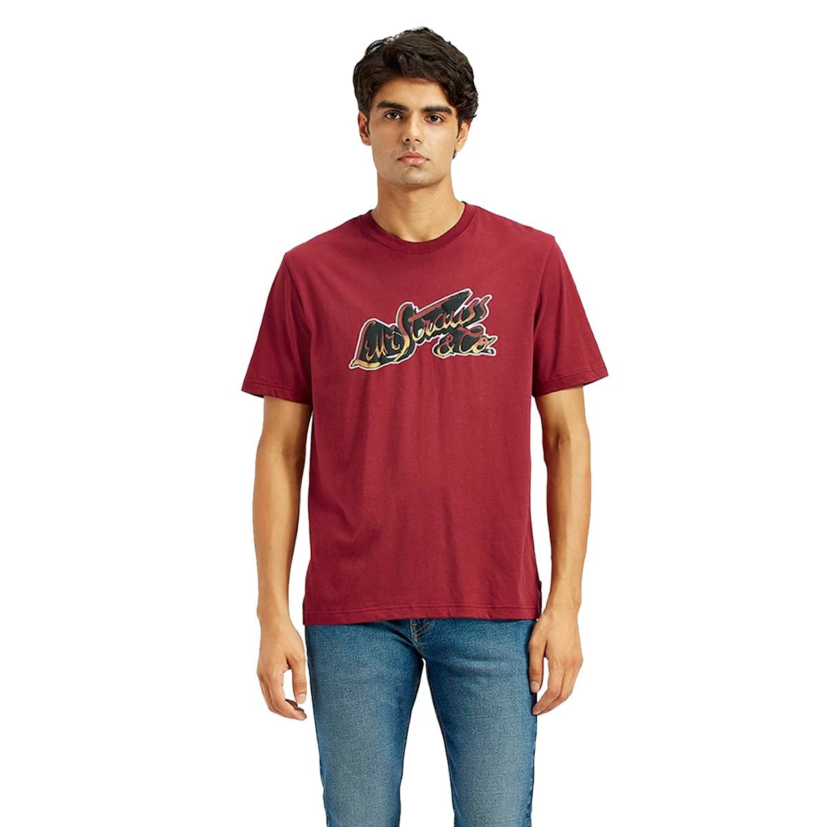 Pass every fit check with this cool Levi’s printed red T-shirt. Made with cotton fabric and designed with a regular silhouette, this men’s tee ensures all-day wearability. Subtle printed pattern Soft and breathable cotton fabric Clean-cut round neck and short sleeves Sports a regular silhouette