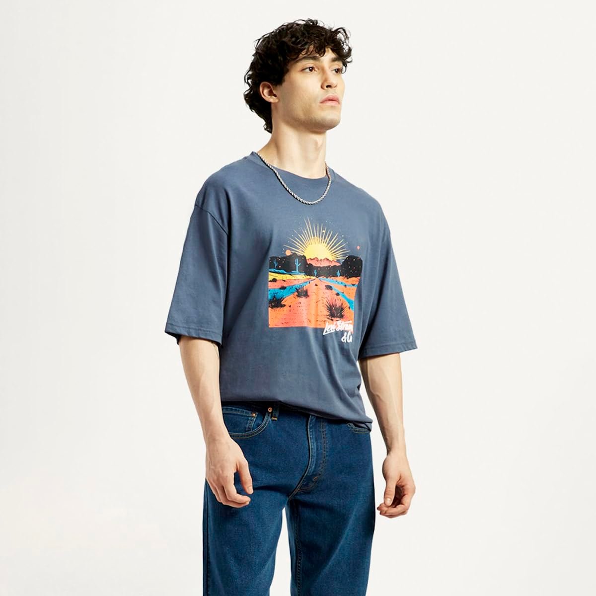Your off-duty days just got trendier with this printed blue T-shirt from Levi’s. Designed from cotton with a regular fit, this T-shirt prioritises comfort. Attractive printed pattern Premium cotton fabric Clean-cut round neck and short sleeves Cut in a regular profile