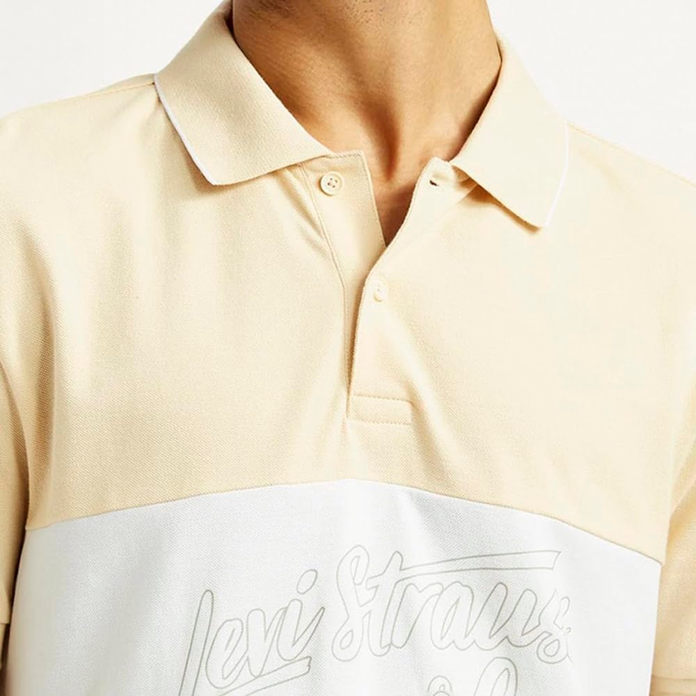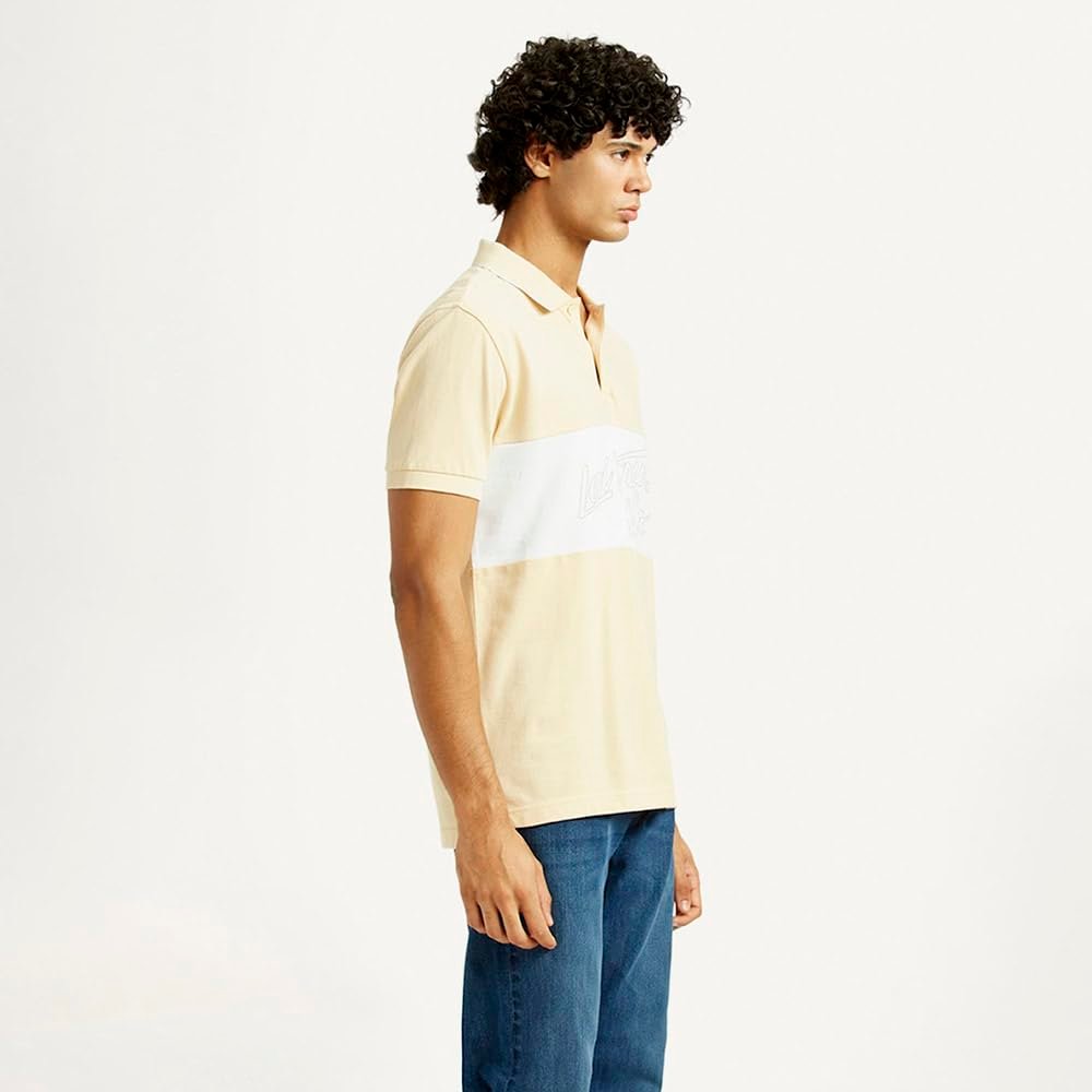 Put a fresh spin on your look with this Levi’s beige polo T-shirt. Additionally, a polo collar and short sleeves round off the look with effortless charm. Tailored from soft, pure cotton in a slim-fit design, this men’s printed polo is ideal for modern everyday wear. Pure cotton fabric is lightweight and skin-friendly Polo collar gives a polished finish Short sleeves are easygoing and warm-weather ready Slim fit offers a tailored look without adding bulk