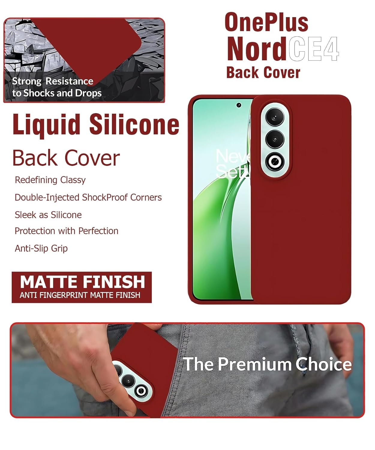 LIRAMARK Liquid Silicone Soft Back Cover Case for OnePlus Nord CE4 5G (Red)
