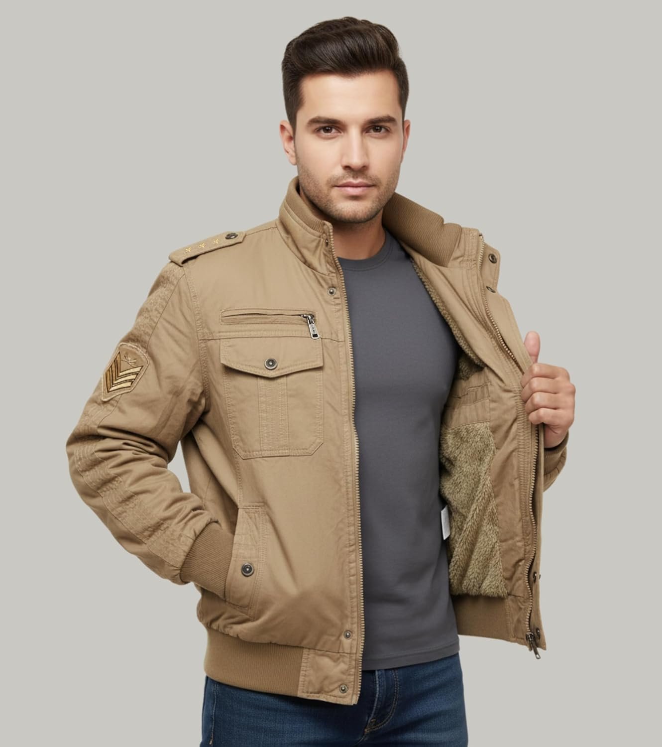 L’MONTE Men’s Imported Cotton Cargo Winter Jacket – Fleece Lining, Windproof Design, and Stylish Casual Outerwear