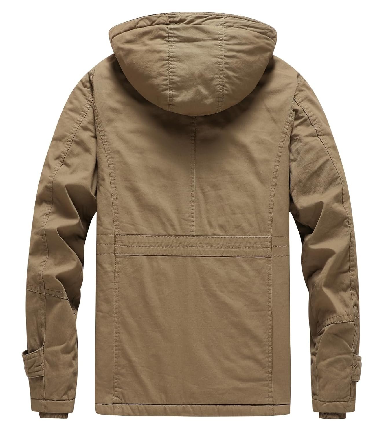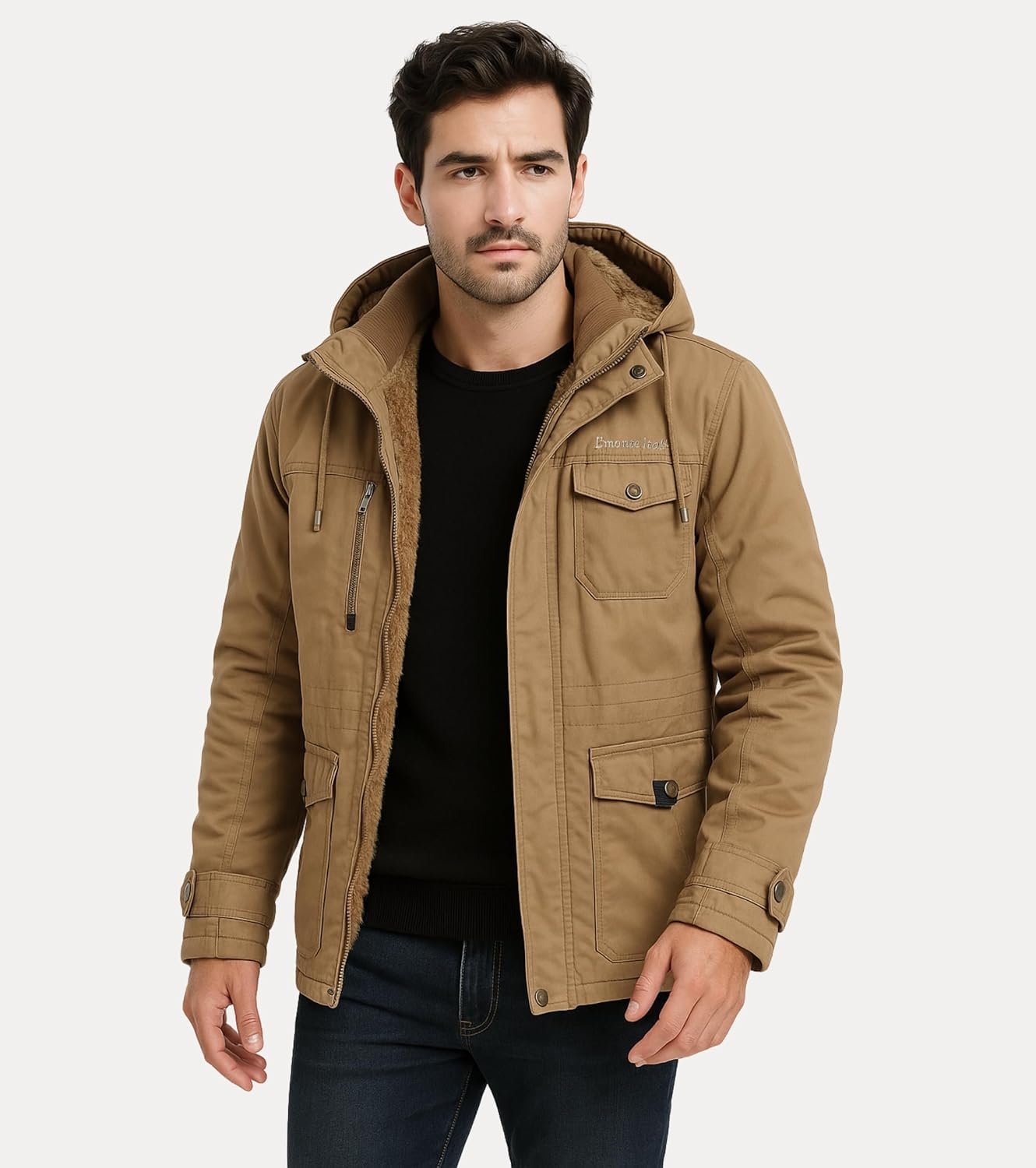 L’MONTE Men’s Winter Cotton Cargo Jacket – Fleece Lining, Detachable Hood, Stand Collar and Ribbed Cuffs – Warm and Stylish Parka for Harsh Cold Weather