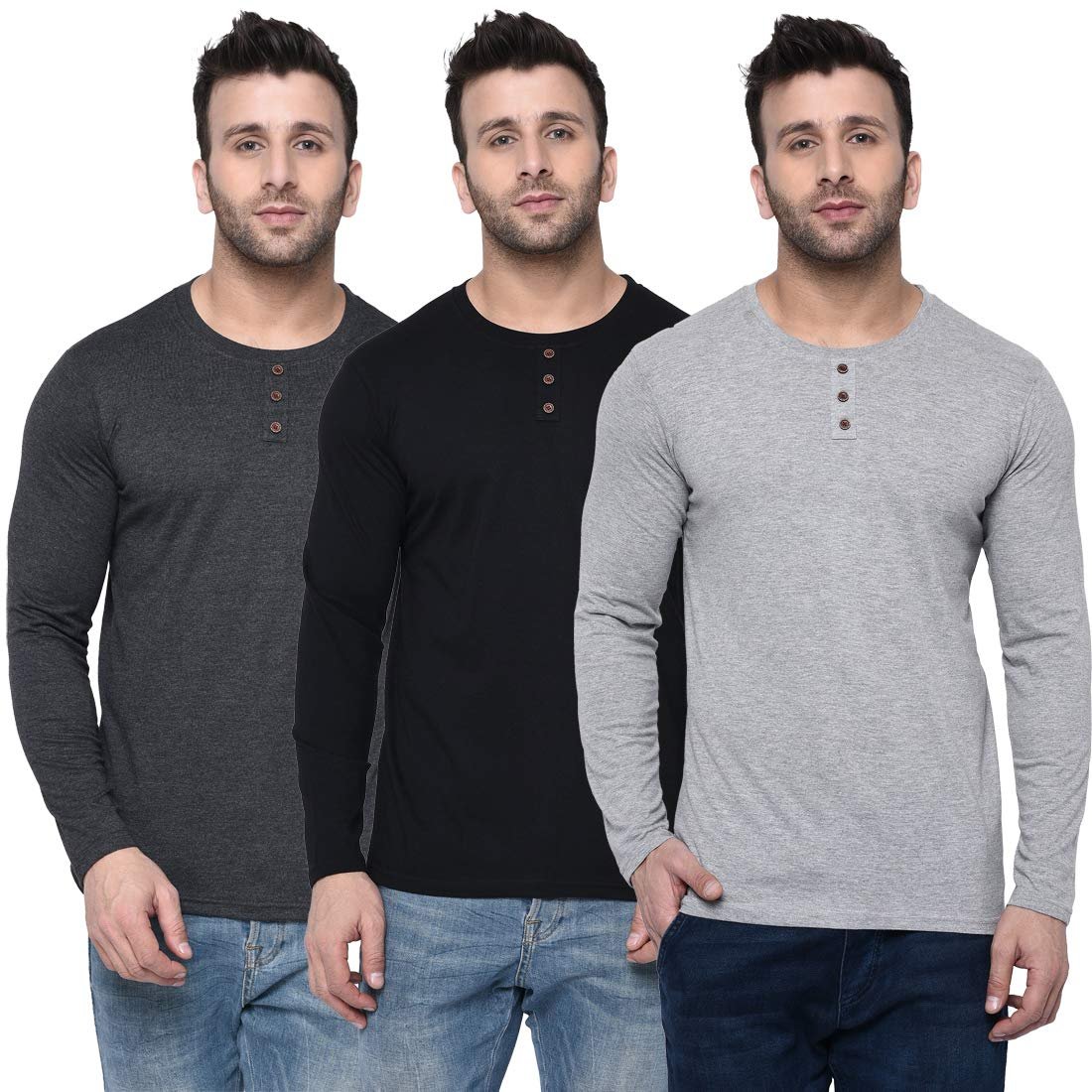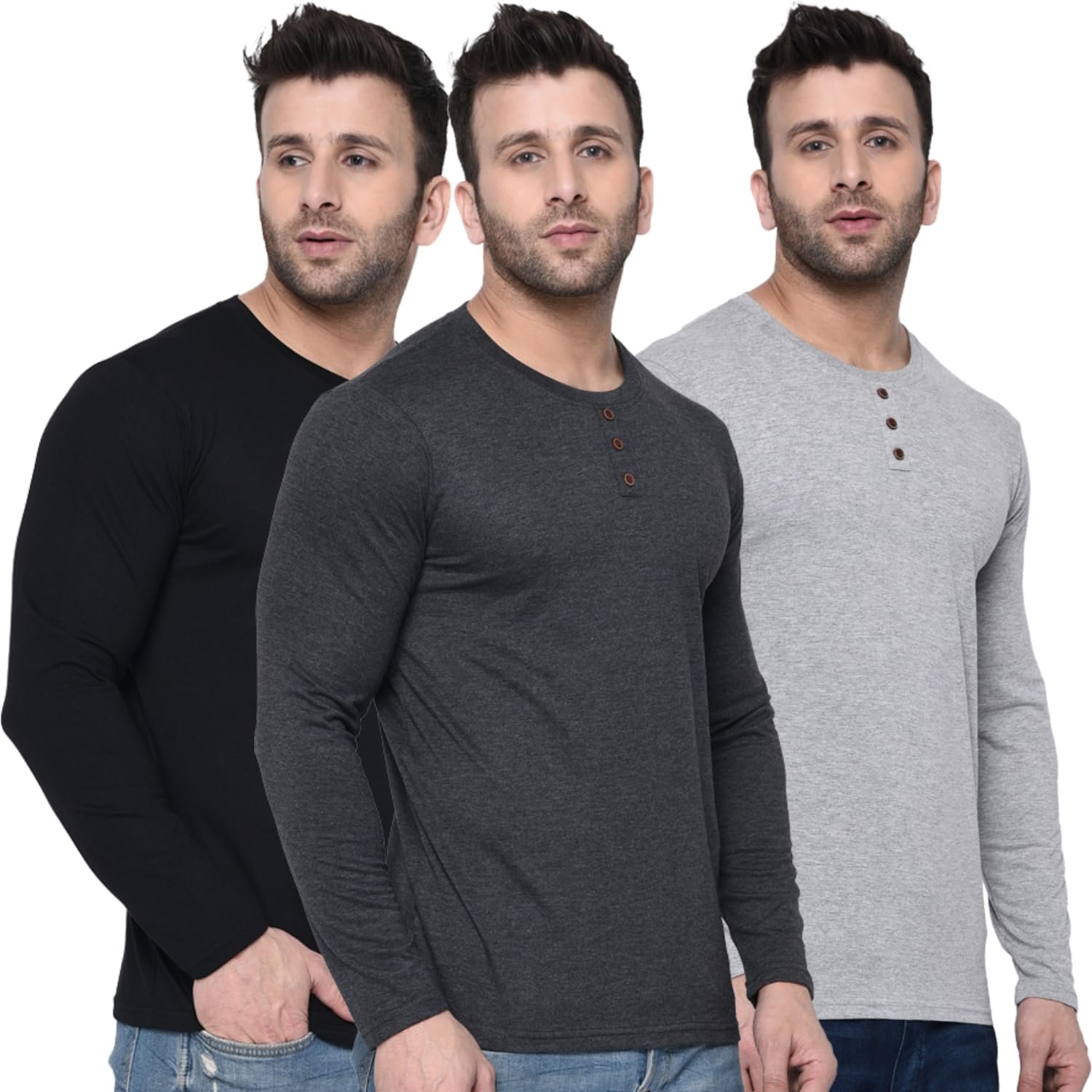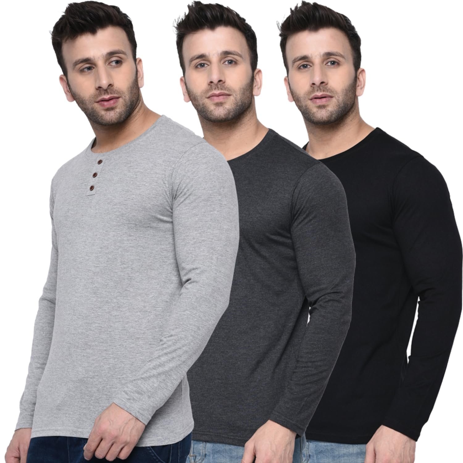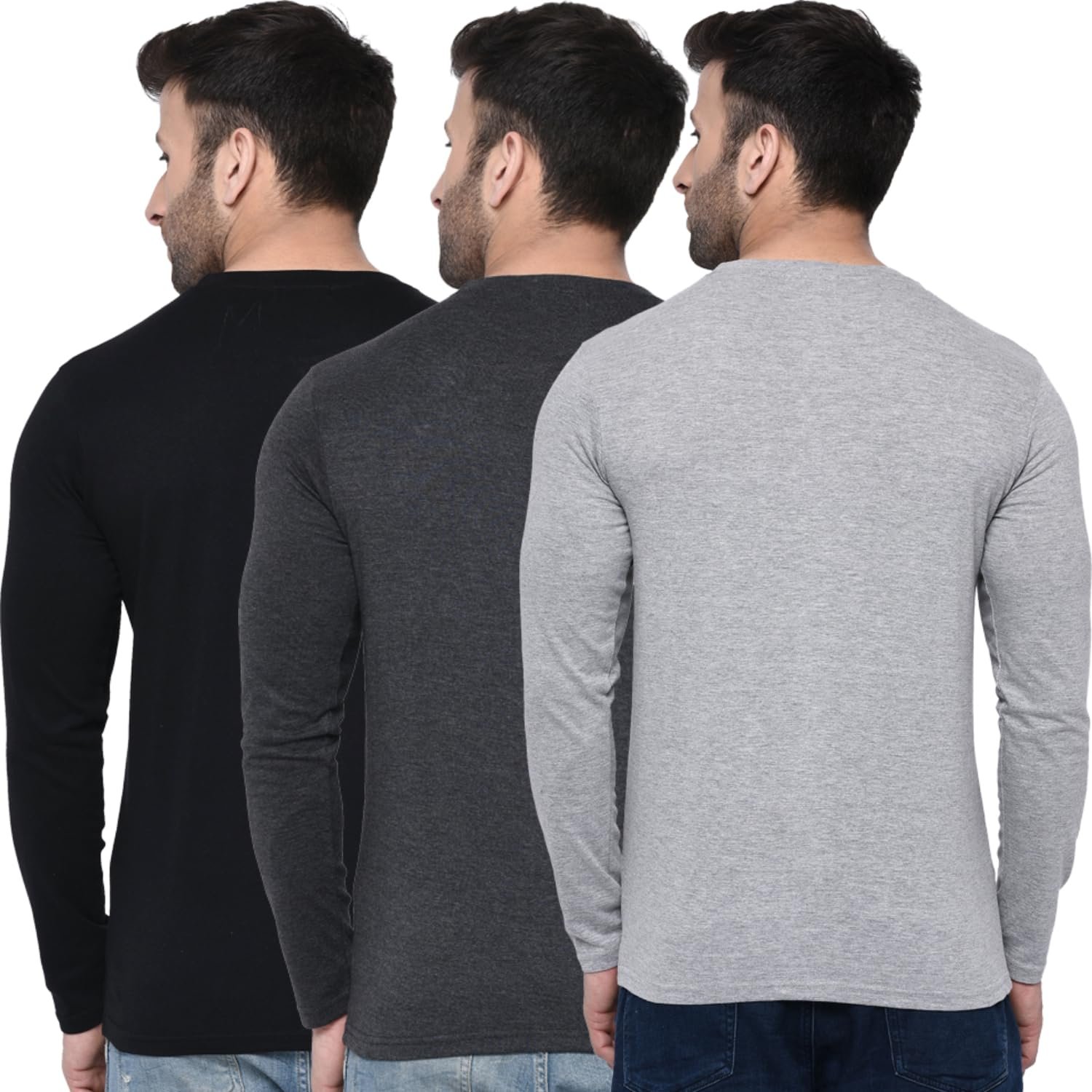 London Hills Solid Men Regular Fit Full Sleeve Round Neck Cotton Blend T-Shirt (Pack of 3)