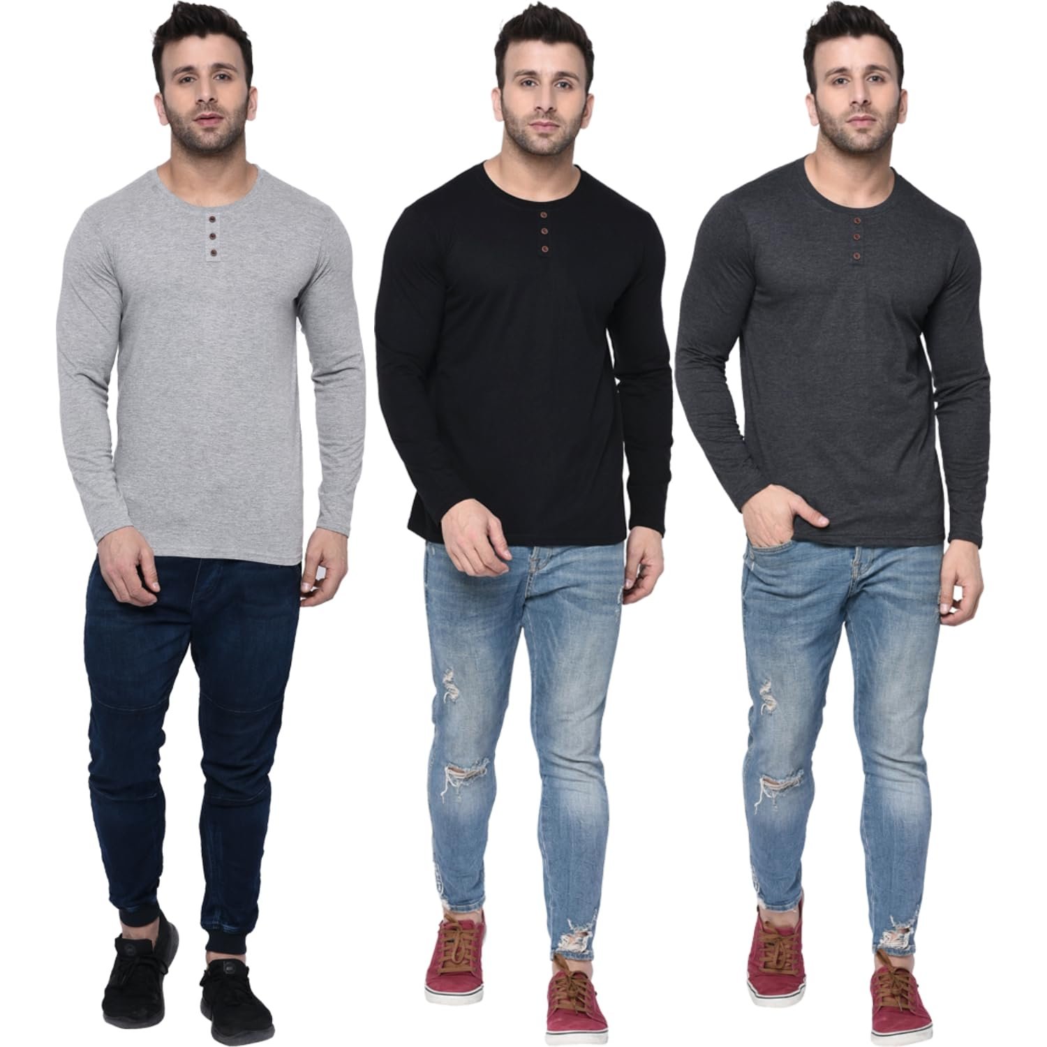 The best in class, pure cotton regular fit round neck full sleeve, multi-purpose t-shirts. Great to wear at gym, sports club, family reunion, picnic or parties. Best part, never fades in color even if you wear and sleep during the night. Just wash and reuse for years. Does not loose color or size (non-shrinkable). Quality clothe made t-shirts. Look stylish in this trendy color-block full half round neck t-shirt from the latest collection of London Hills Fashion Store. The youthful design, high-quality cotton fabric, custom fit make it a must have for this season.