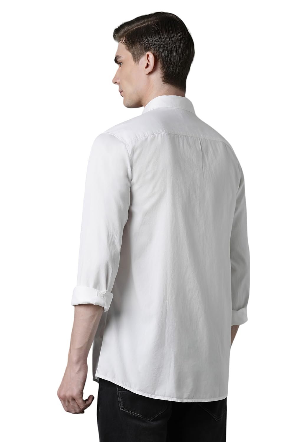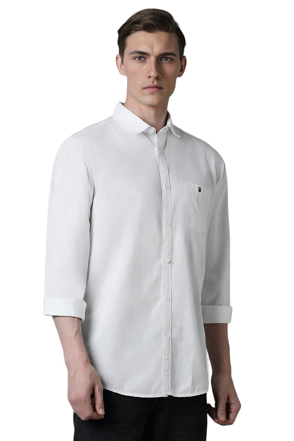 Louis Philippe Men’s Over Dyed Solid Premium Slim fit Casual Shirt with Washed Look & Soft Hand Feel