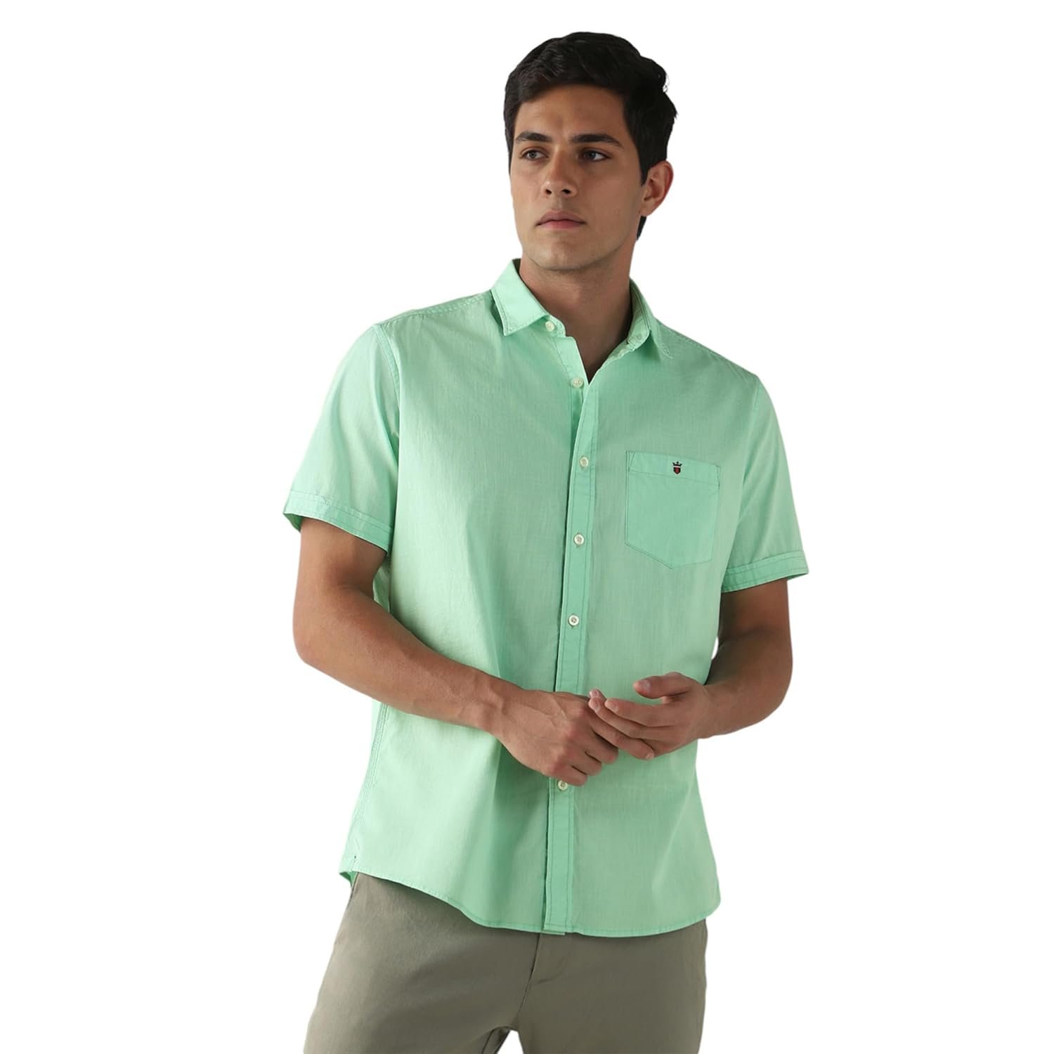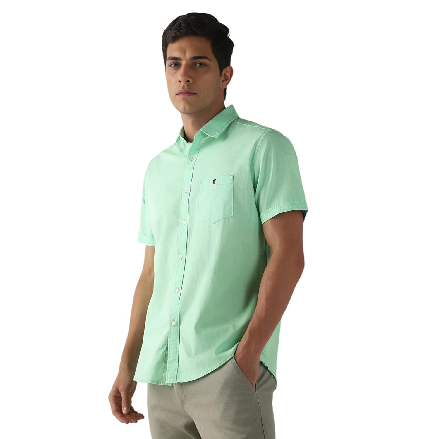 Showcase your refined sartorial taste in this Black Solid shirt from Louis Philippe Jeans at a Casual event. Tailored in Slim Fit , this shirt features a Regular Collar , Half Sleeves , and is crafted from exquisite 100% Cotton .