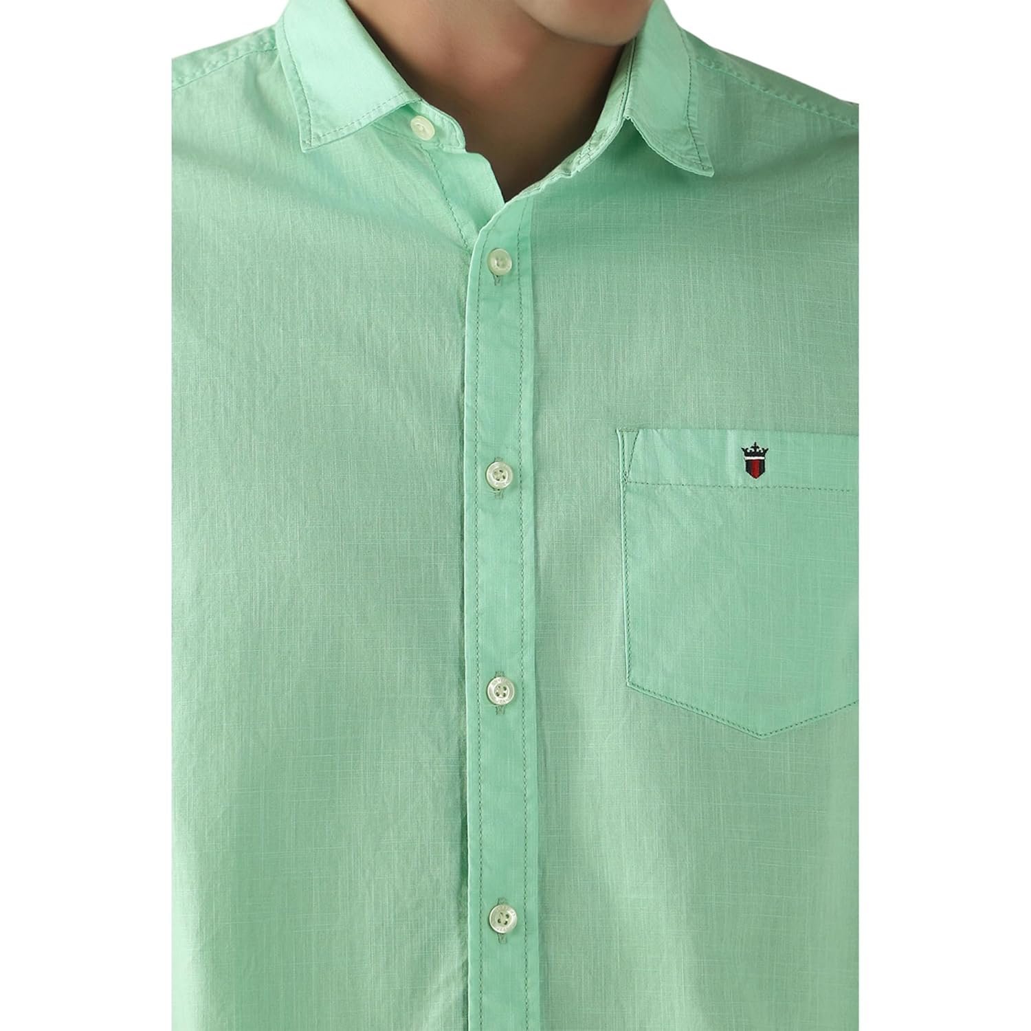 Louis Philippe Men’s Textured Premium Cotton Slim fit Linen Blend Half Sleeve Casual Shirt with Soft Hand Feel