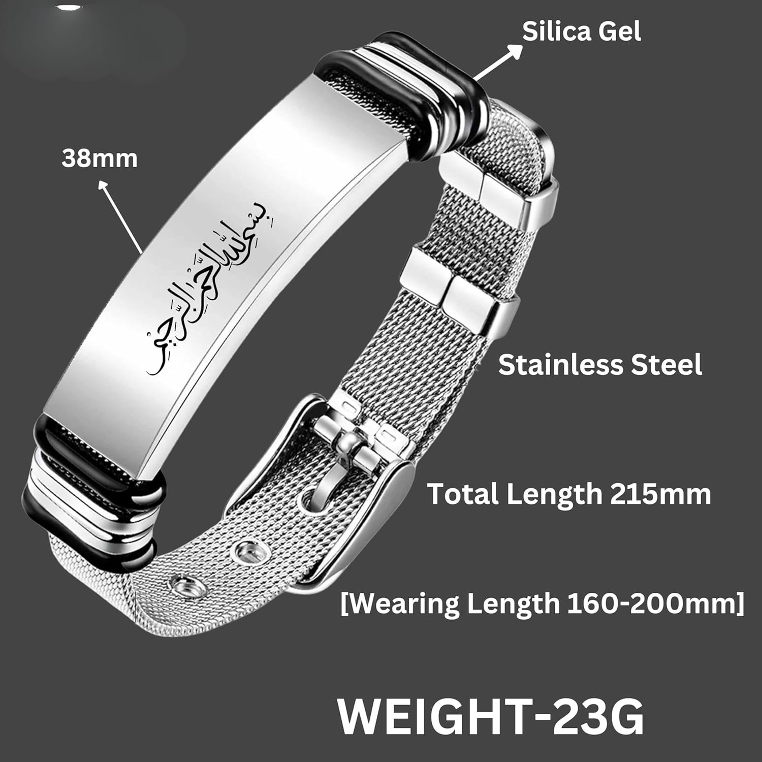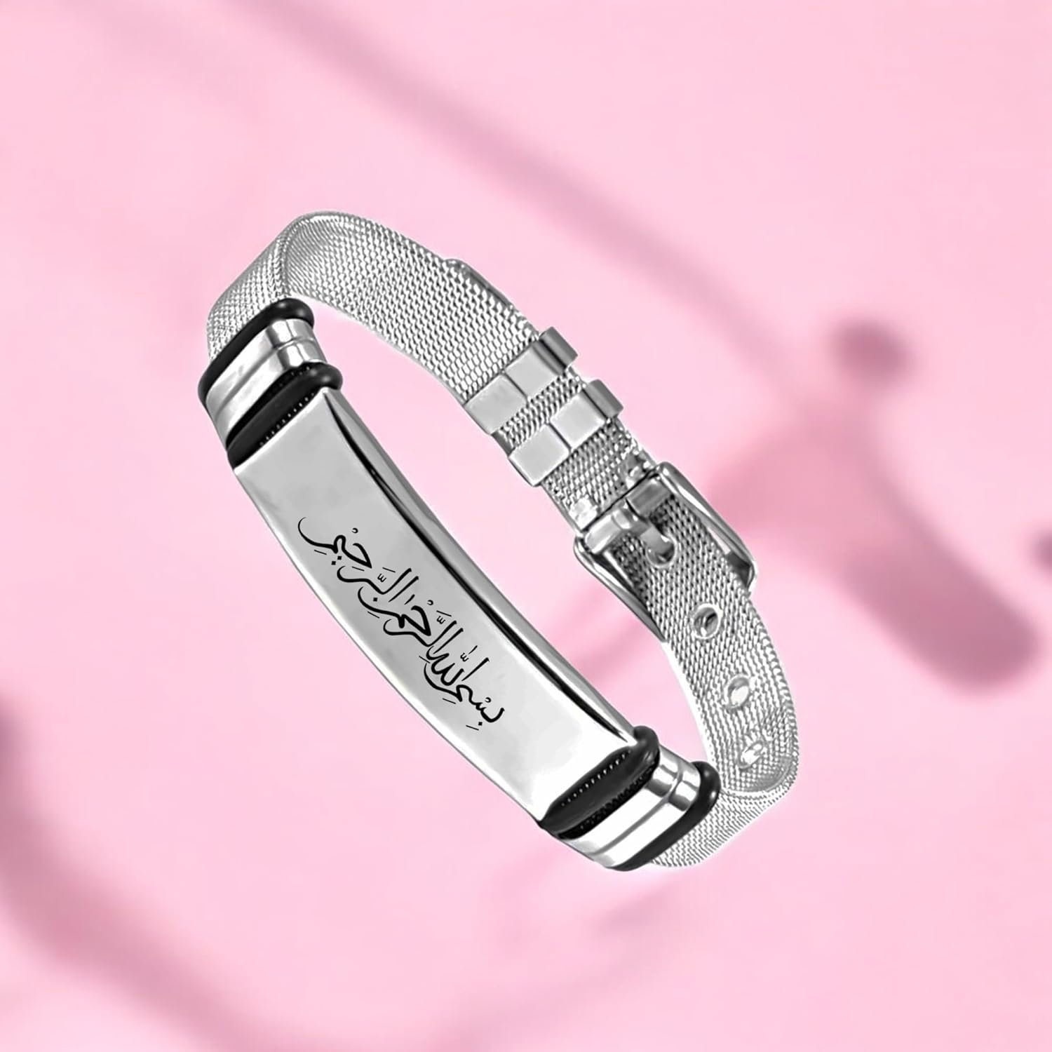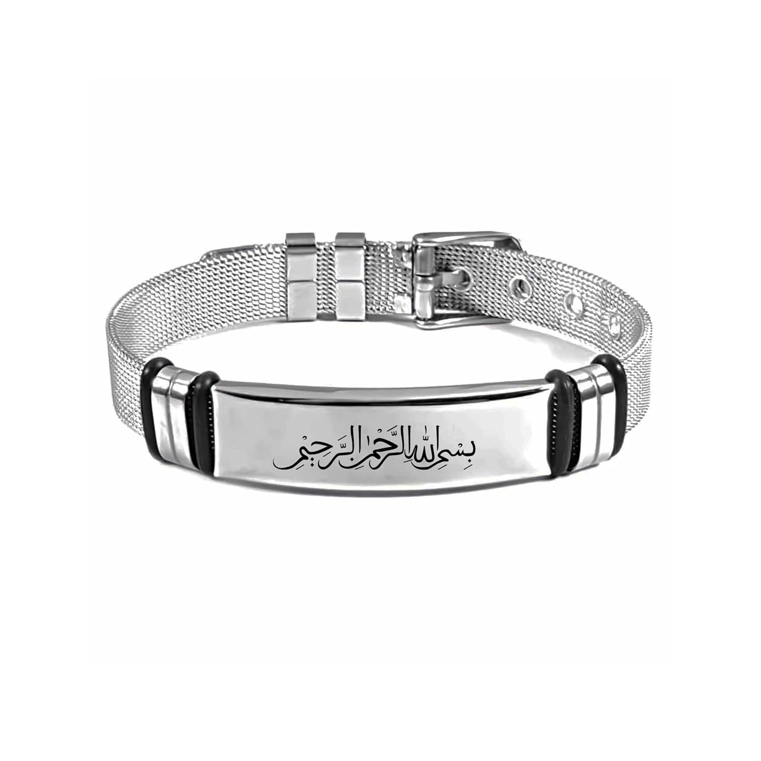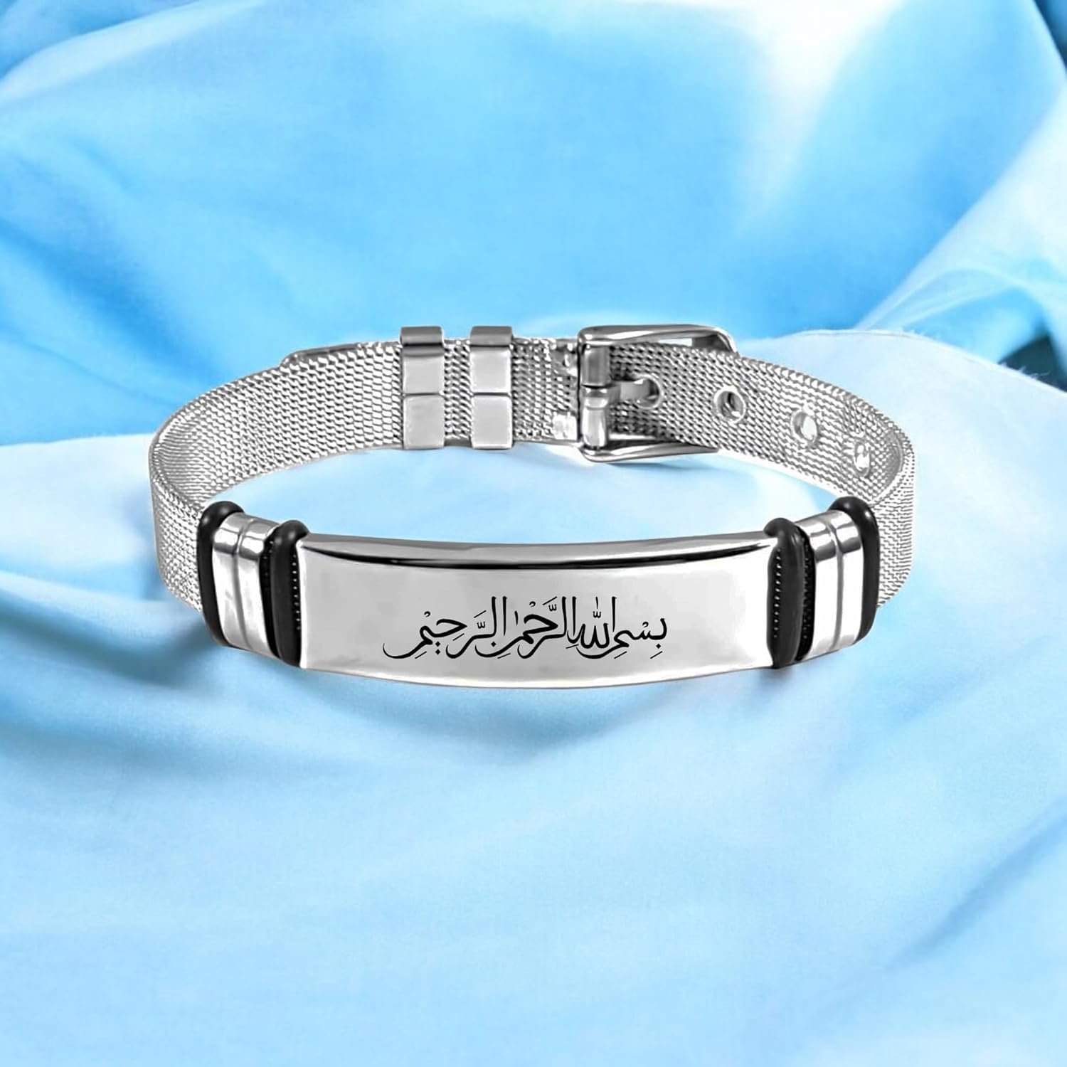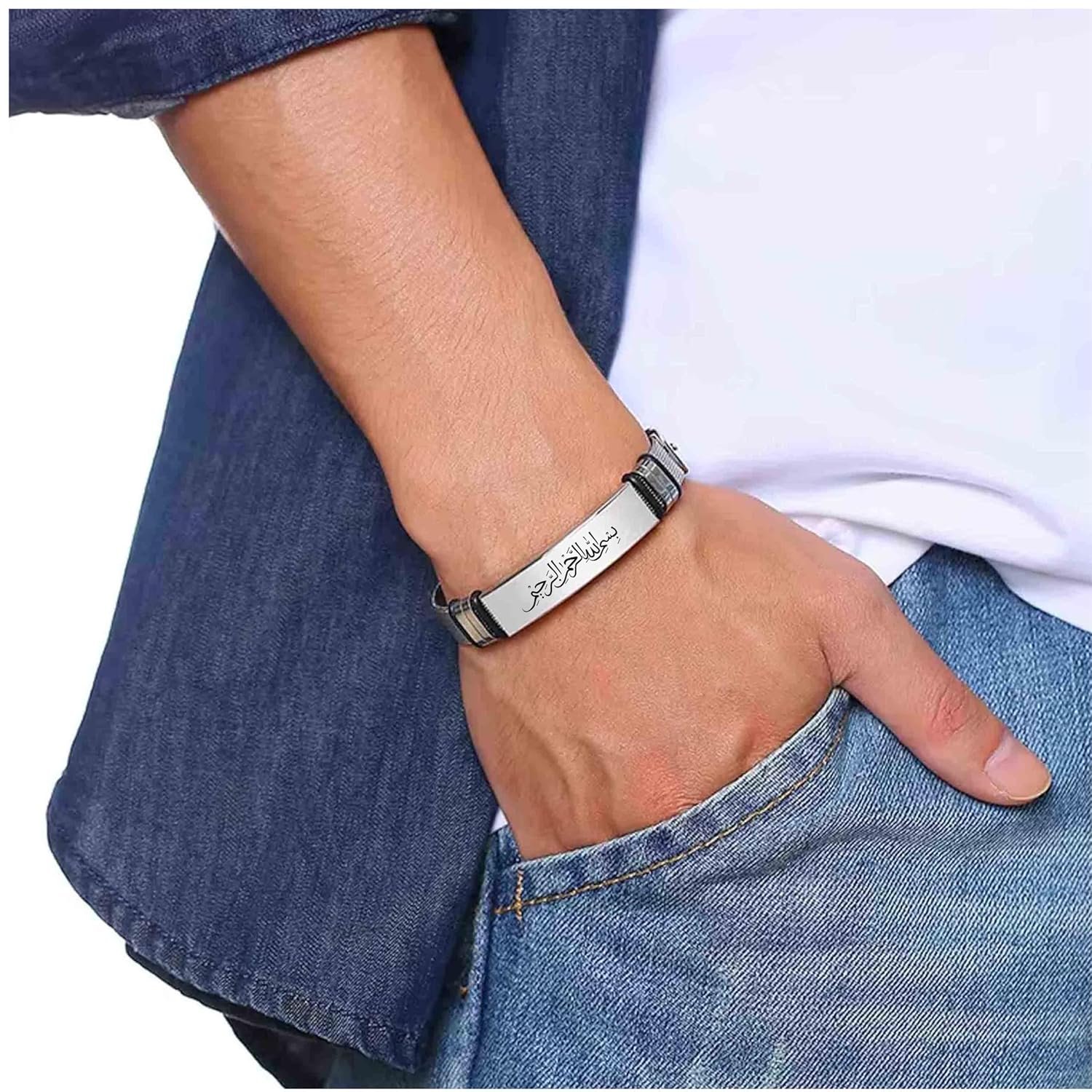 M Men Style Islamic Allah Stainless Steel Bracelet, Religious Islam Name of God Amulet Bangle for Muslim Arab Protection Gifts for Men Women Silver