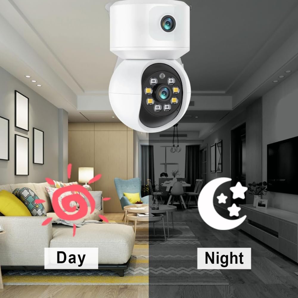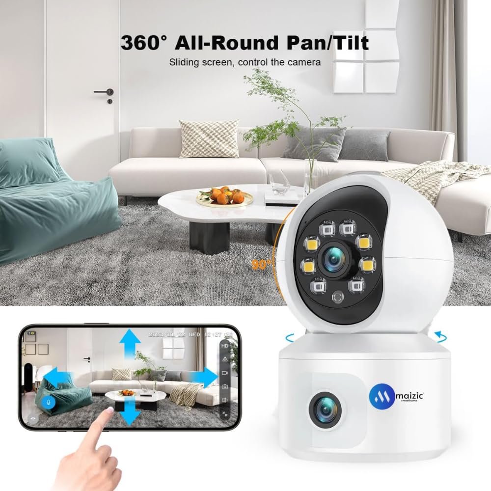 DUAL LENSE DUAL SCREEN VIEW : It has two cameras – one rotatable and second fixed. Almost 360*(vertical -90* , horizontal -355*) coverage without any blind spot. Watch both Maizic camera on one screen. You need wifi only to see live videos. SD card record videos even without wifi.